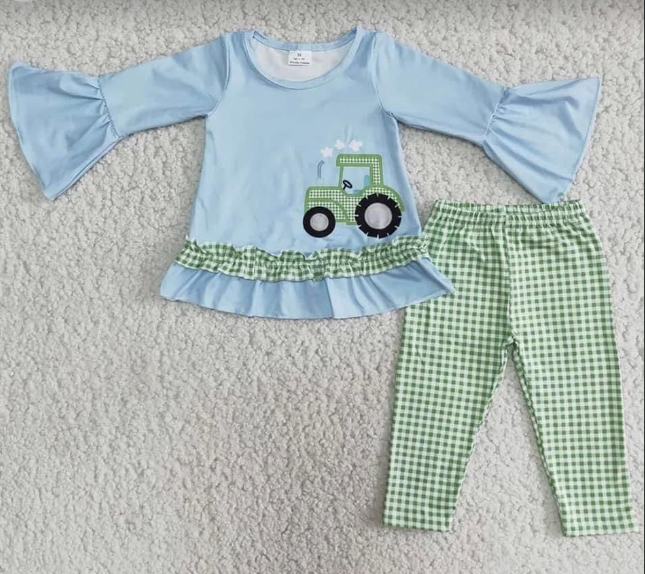 Clearance 6 B2-37 Blue Truck Green Plaid Tunic Girls Long Sleeve Pants Outfits