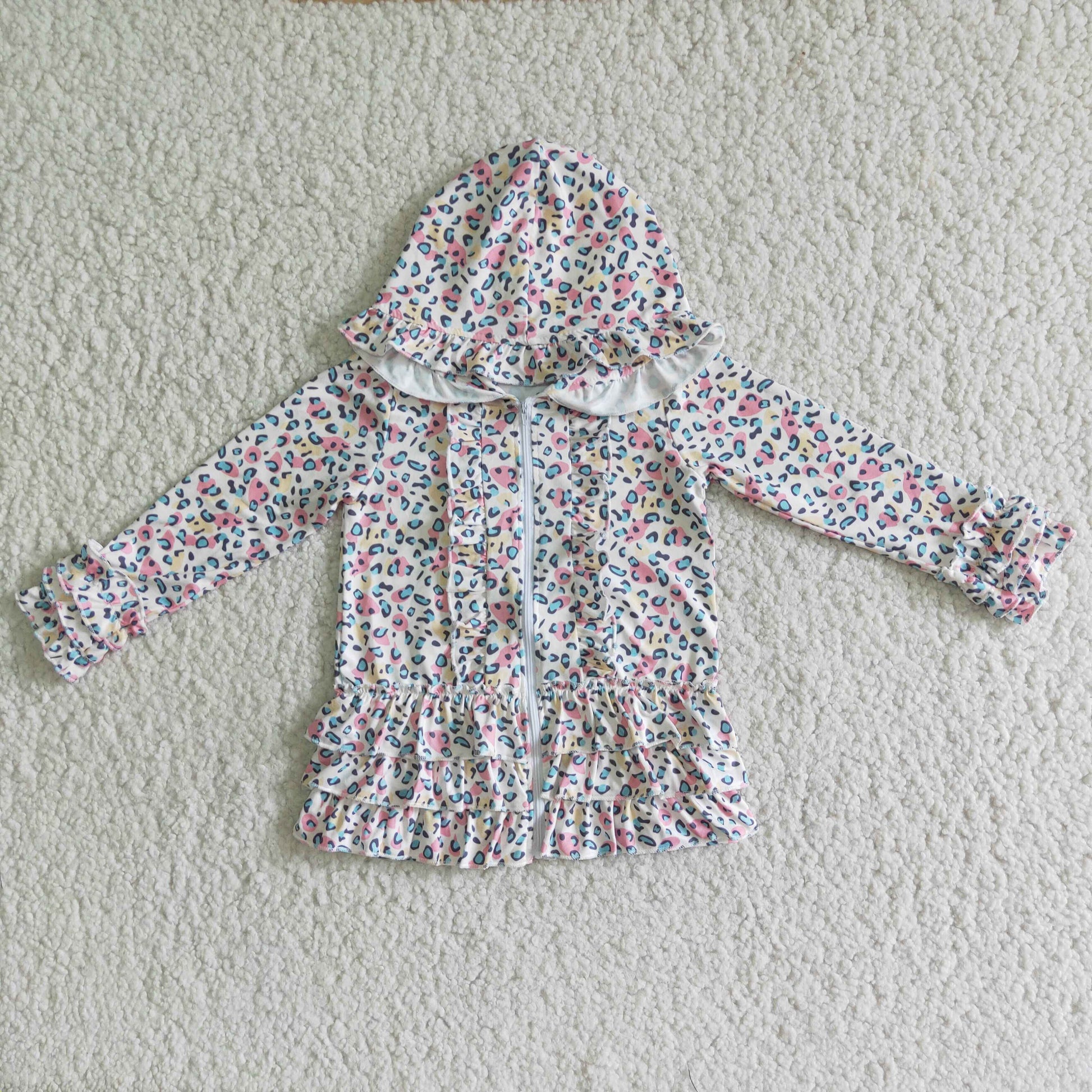 Adorable Ruffles Long Sleeve Leopard Print Jacket