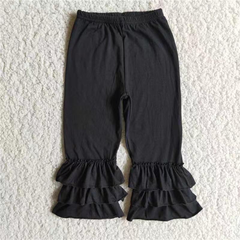 C6-12 Black Baby Cotton Fabric Ruffles Pants