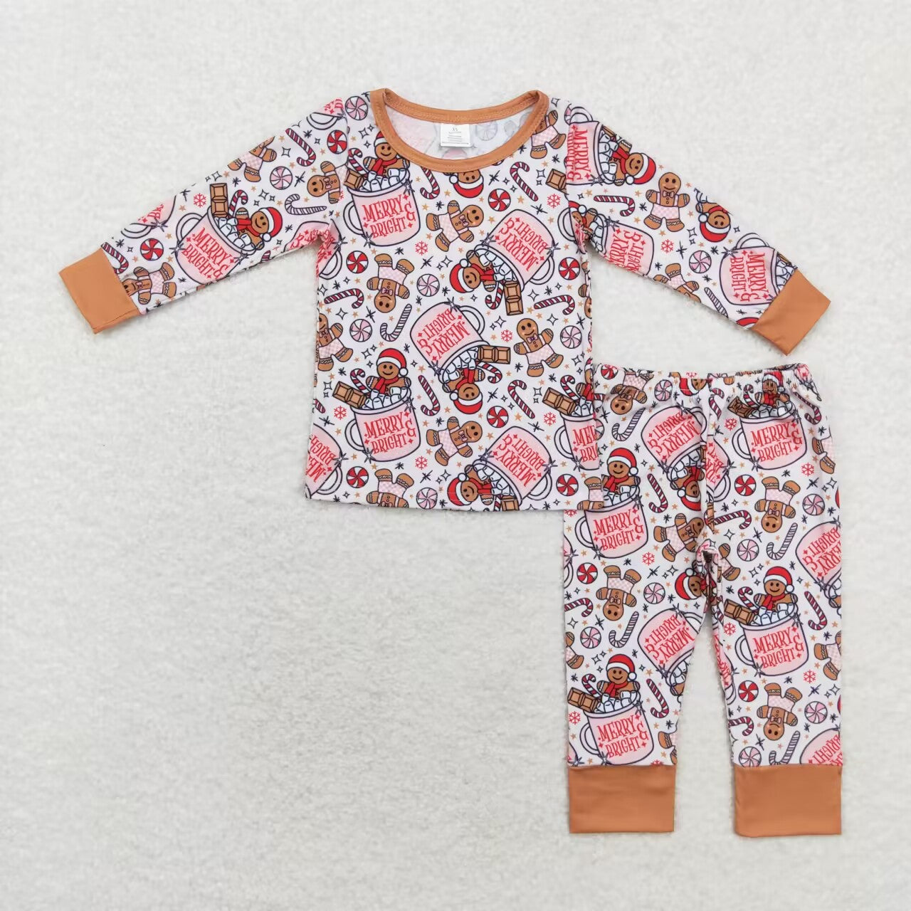 BLP0676 merry bright Modal Cup gingerbread Man Long sleeve pants pajamas set