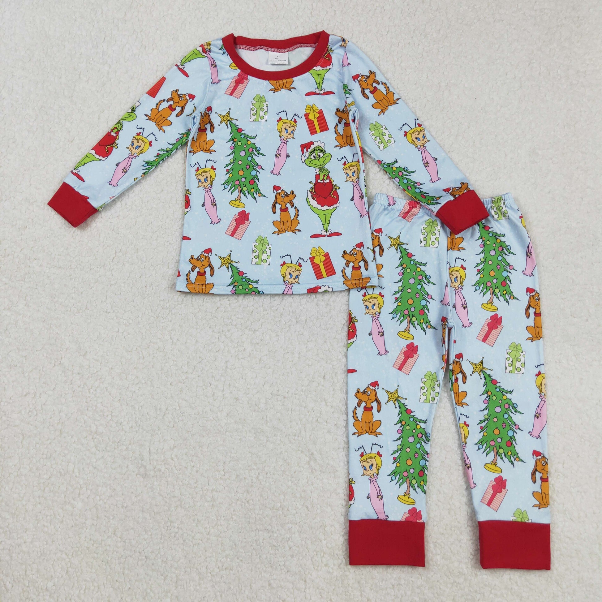 BLP1189 Christmas Grinch Long-Sleeved Pants Boys Pajamas Set 202508 RTS