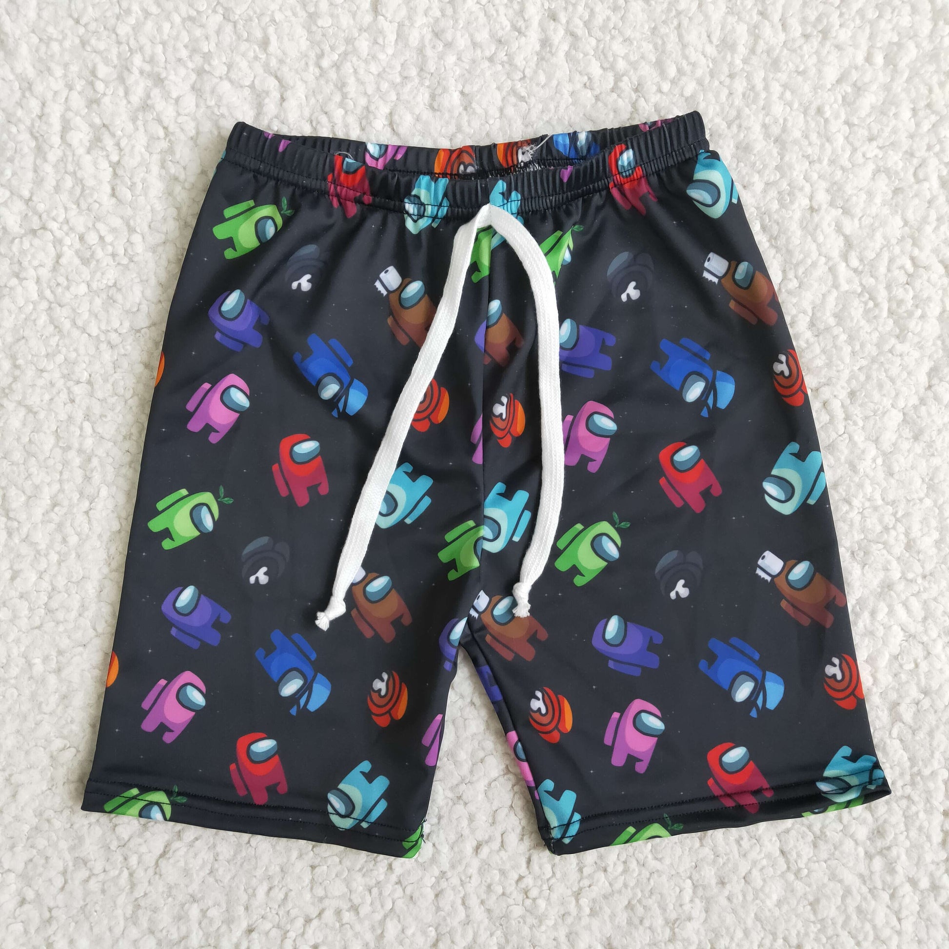 B0-14 Boys Cartoon Black Print Music Swimming Trunks