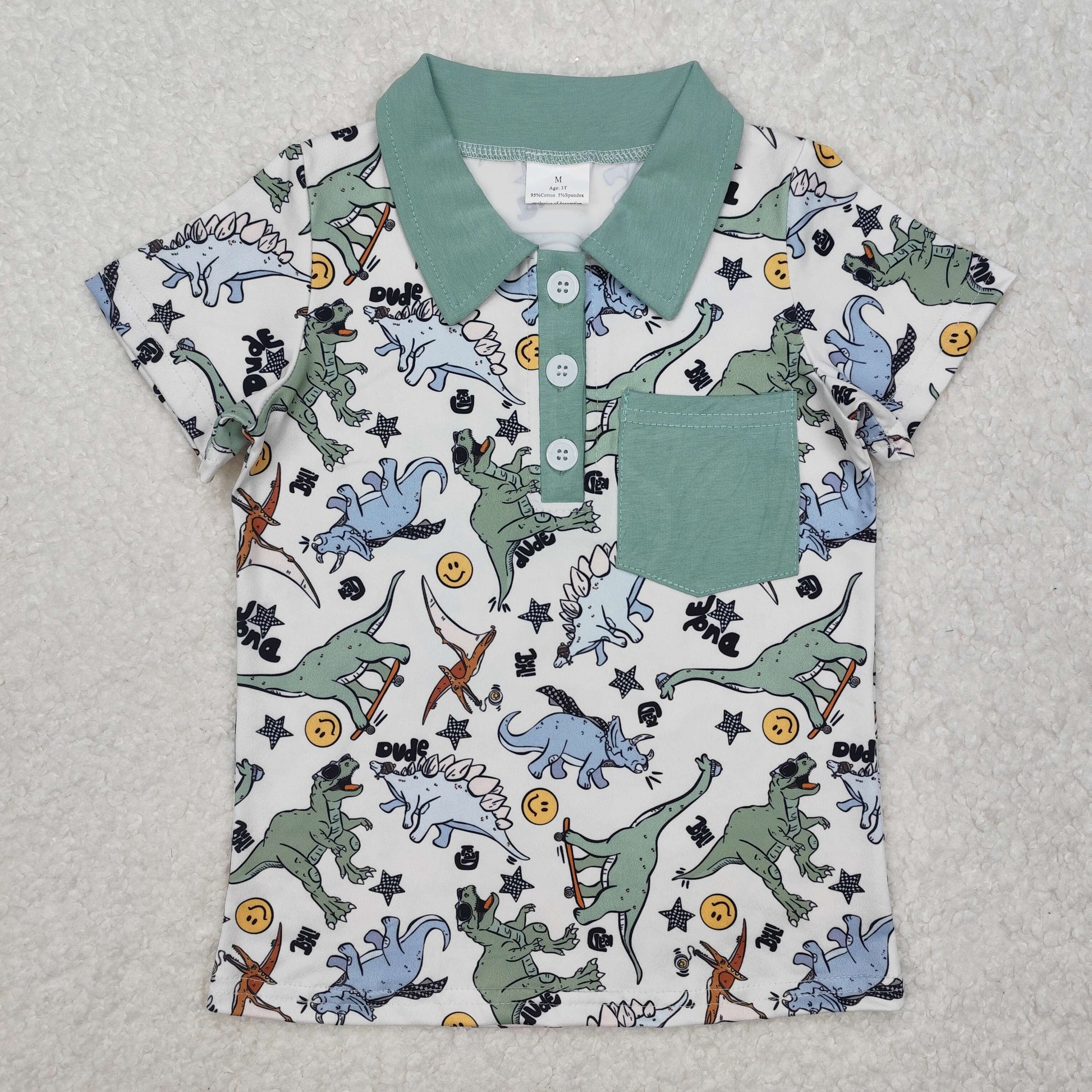BT1133 Dinosaur Dark Green Polo short sleeve t-shirts baby boys boutique summer outfit 202501RTS