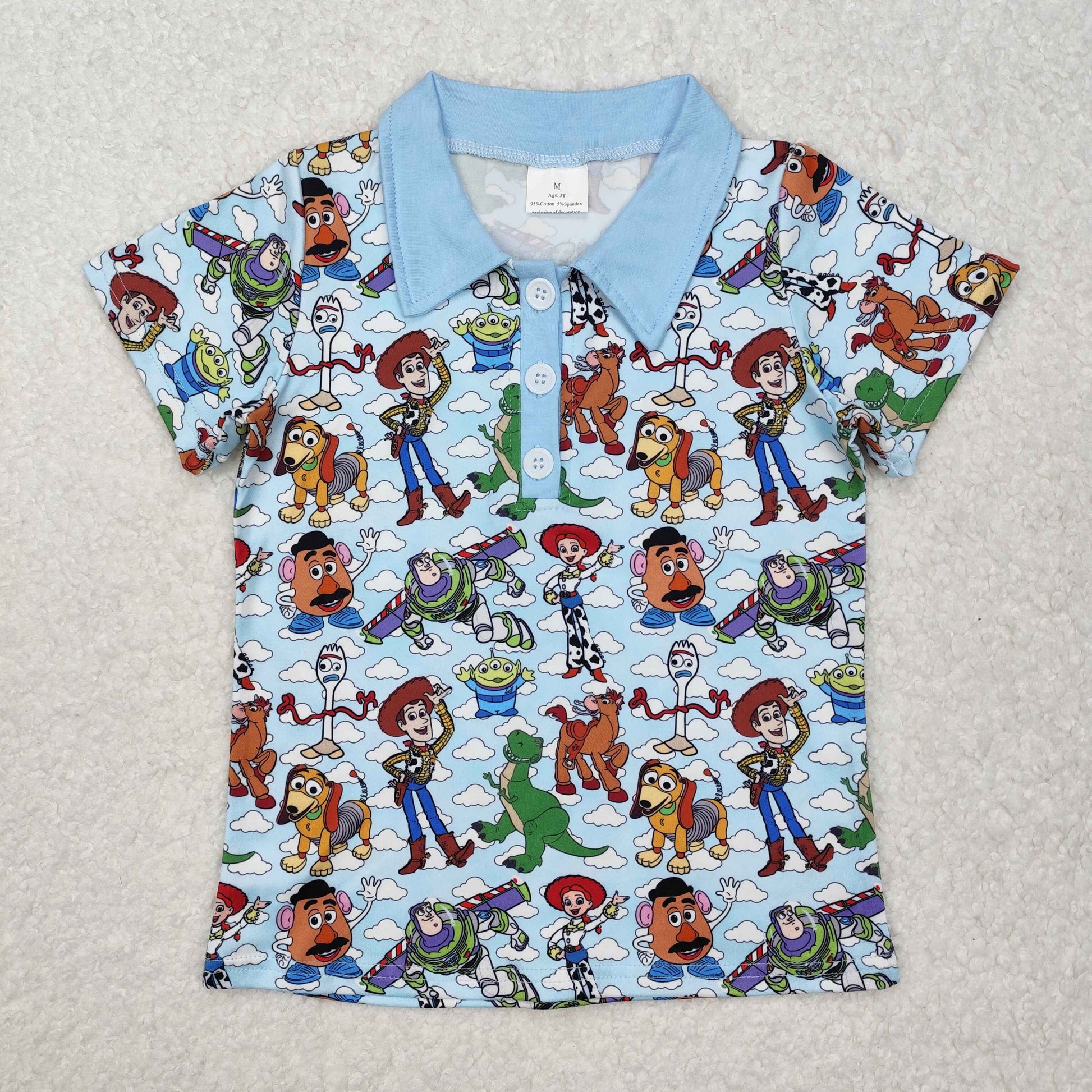 BT1158 Blue Cartoon Pattern Polo short sleeve t-shirts baby boys boutique outfit 202501RTS
