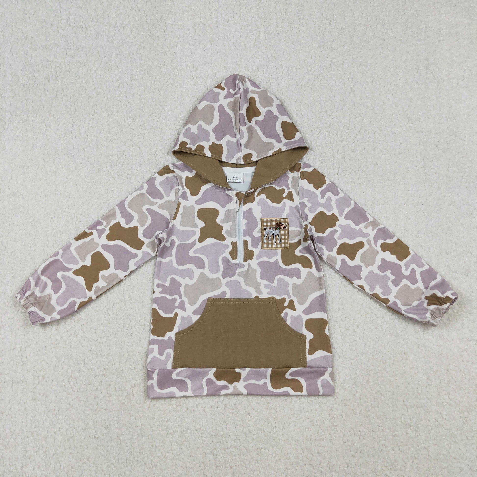 BT1302 Embroidered Duck Hunting Light Brown Hooded Long Sleeve Boys Top 202510 RTS