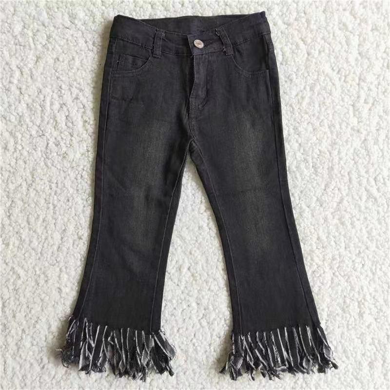 D4-30 Black Solid Color Tassels Baby Girls Denim Jeans