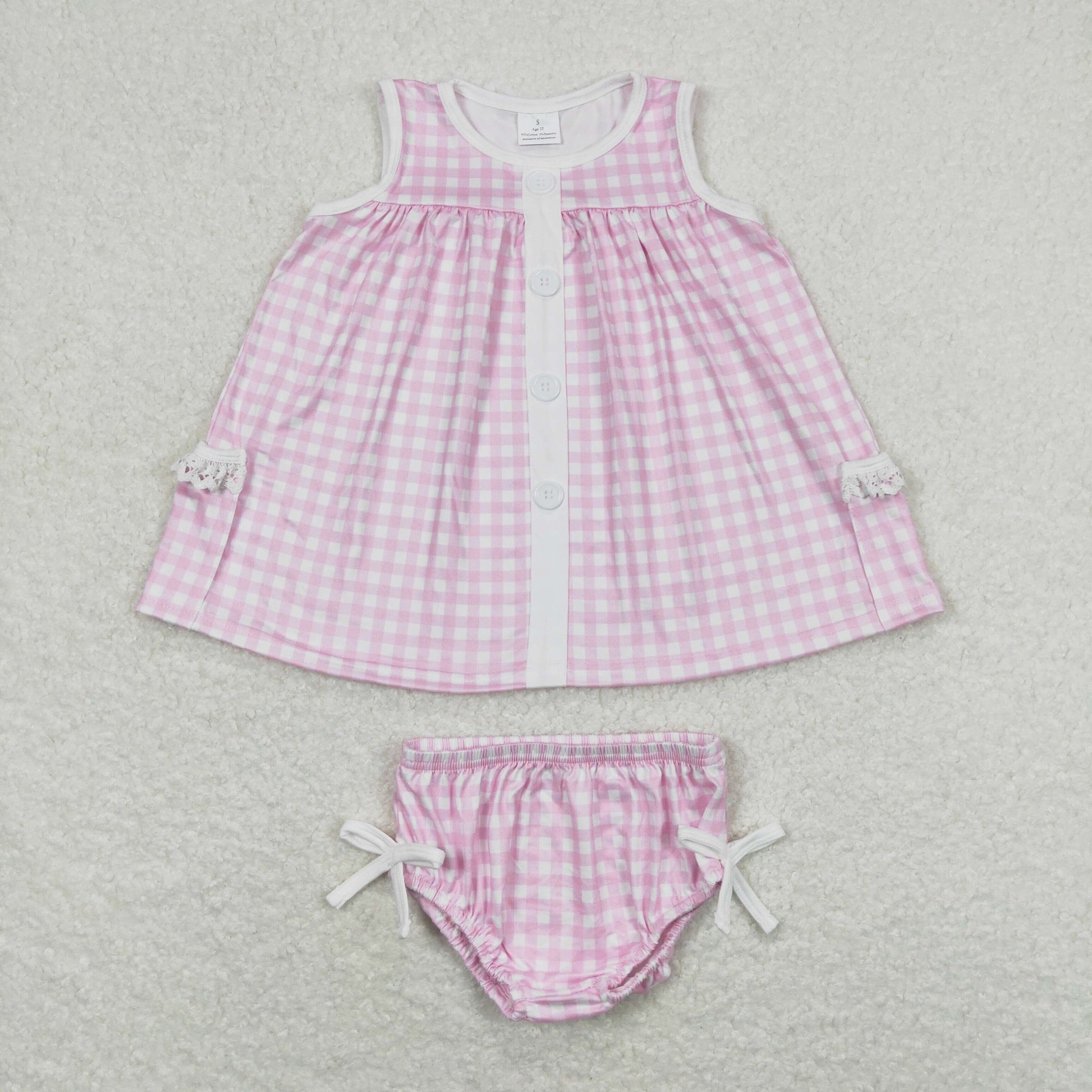 GBO0263 Girls Boutique Pink Plaid Lace Ruffle Pocket Sleeveless Top Briefs Set 20240408 RTS