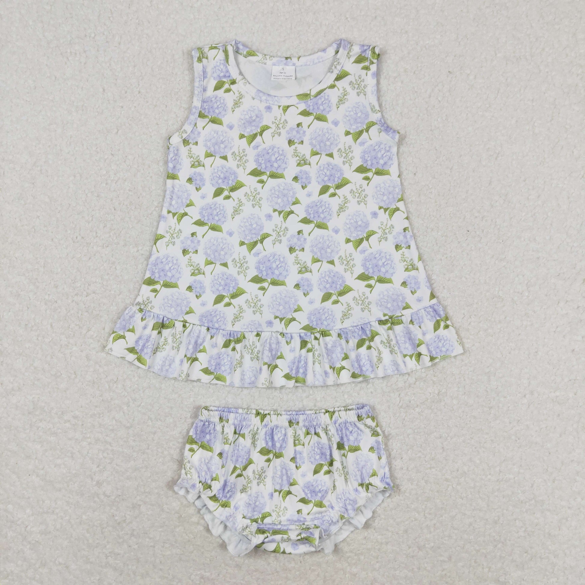 GBO0342 Hydrangea beige sleeveless briefs set high quality baby girls' clothing sets for 6 month