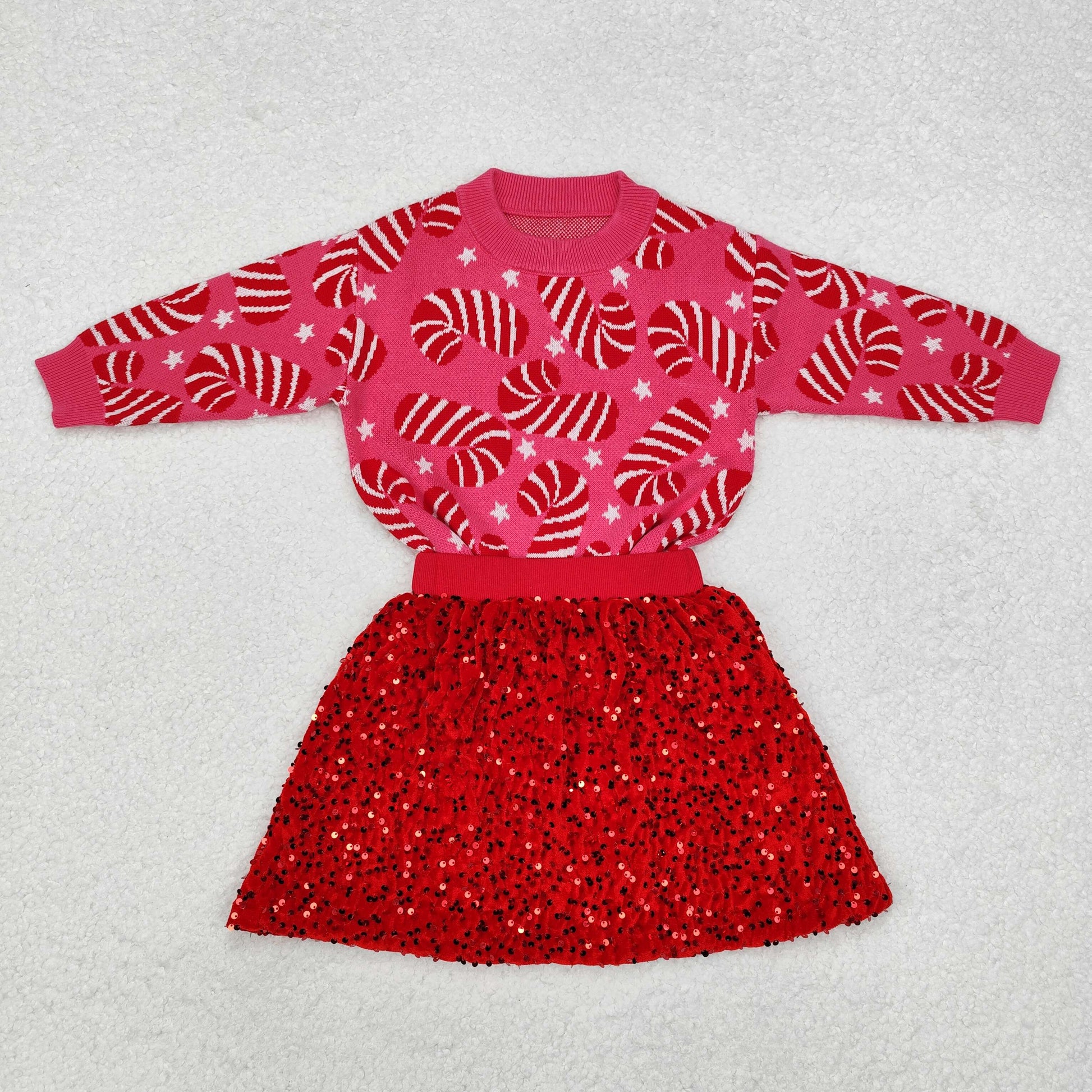 GLD0671 Christmas Red Sweater with Sequined Skirts Sets for Girls RTS 202509