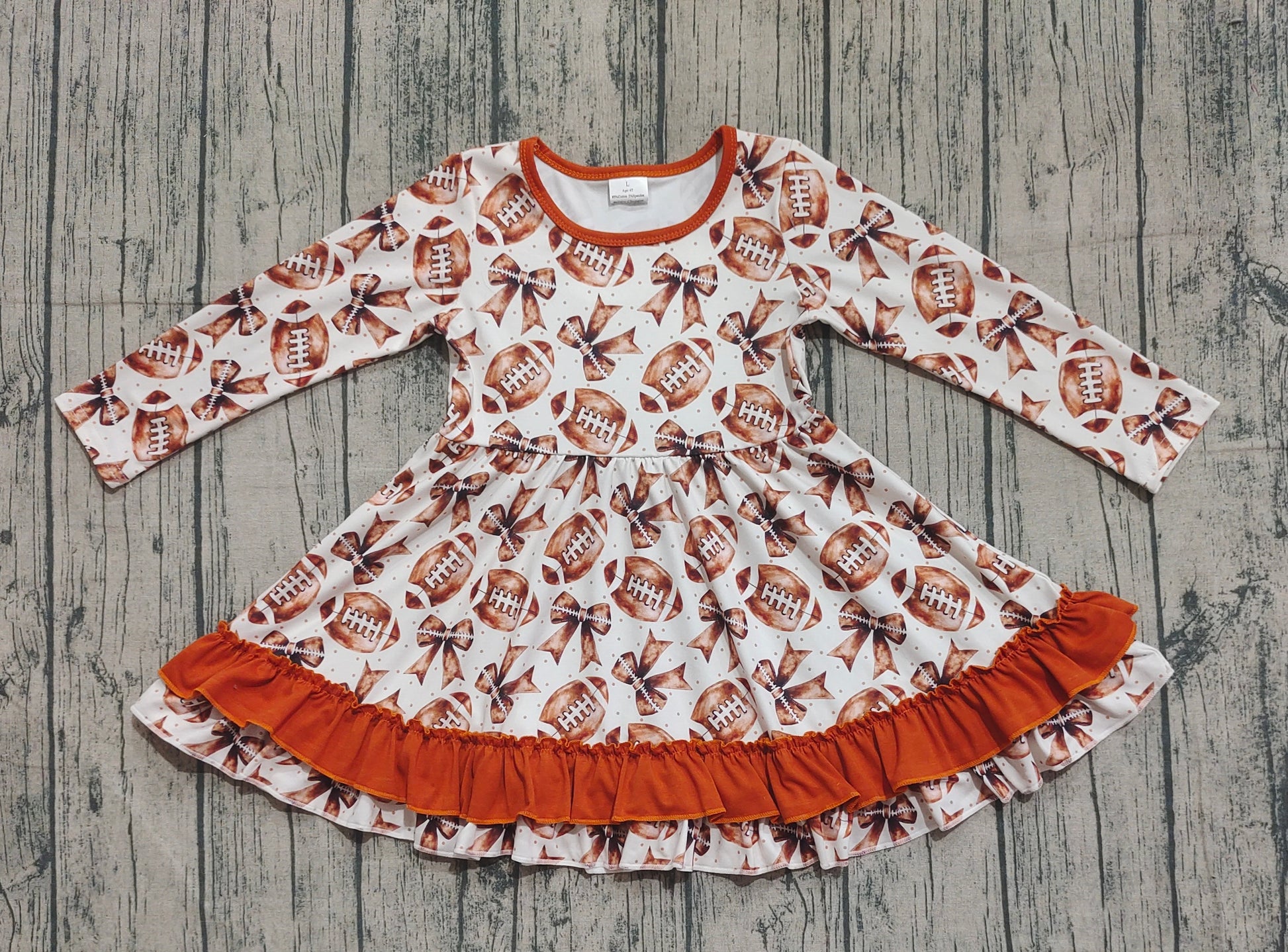 GLD1268 Rugby Brown O-Neck Ruffle Long Sleeve Dresses for Girls 202509 RTS