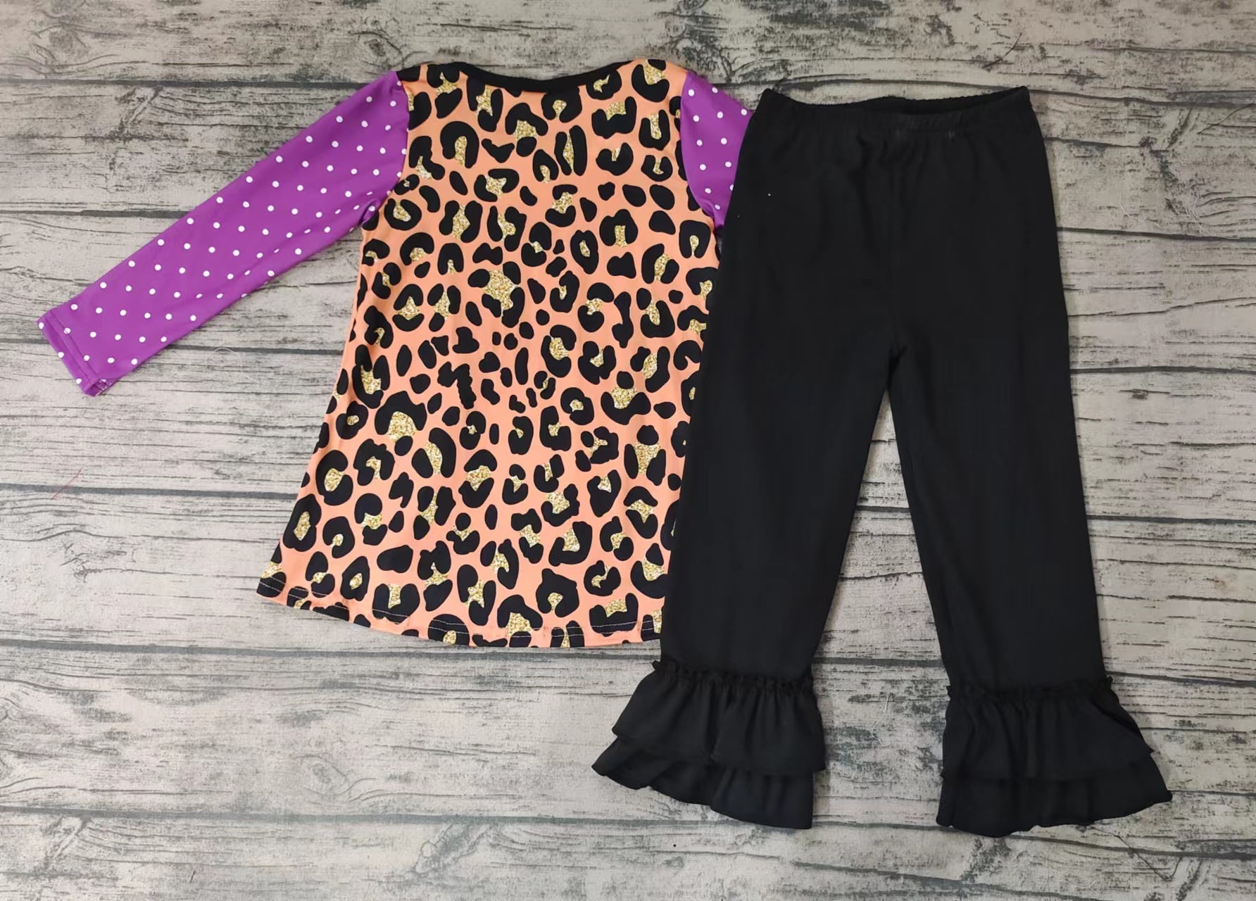 GLP0049 Halloween Pumpkin Ghost Orange Purple Leopard Rainbow Girls Long Sleeve Pants Outfits