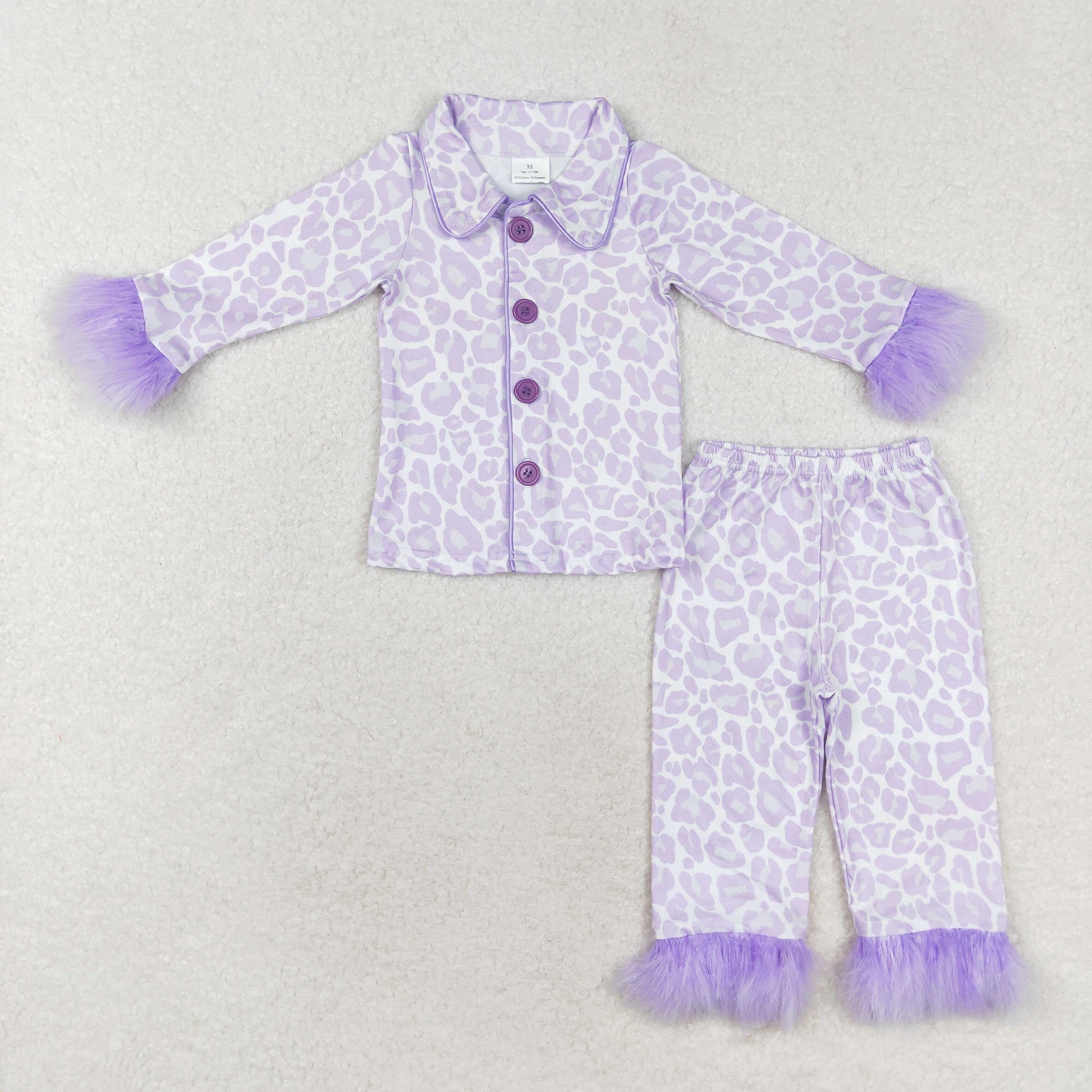 GLP1259 Leopard print purple long-sleeved pant pajama set with plush border