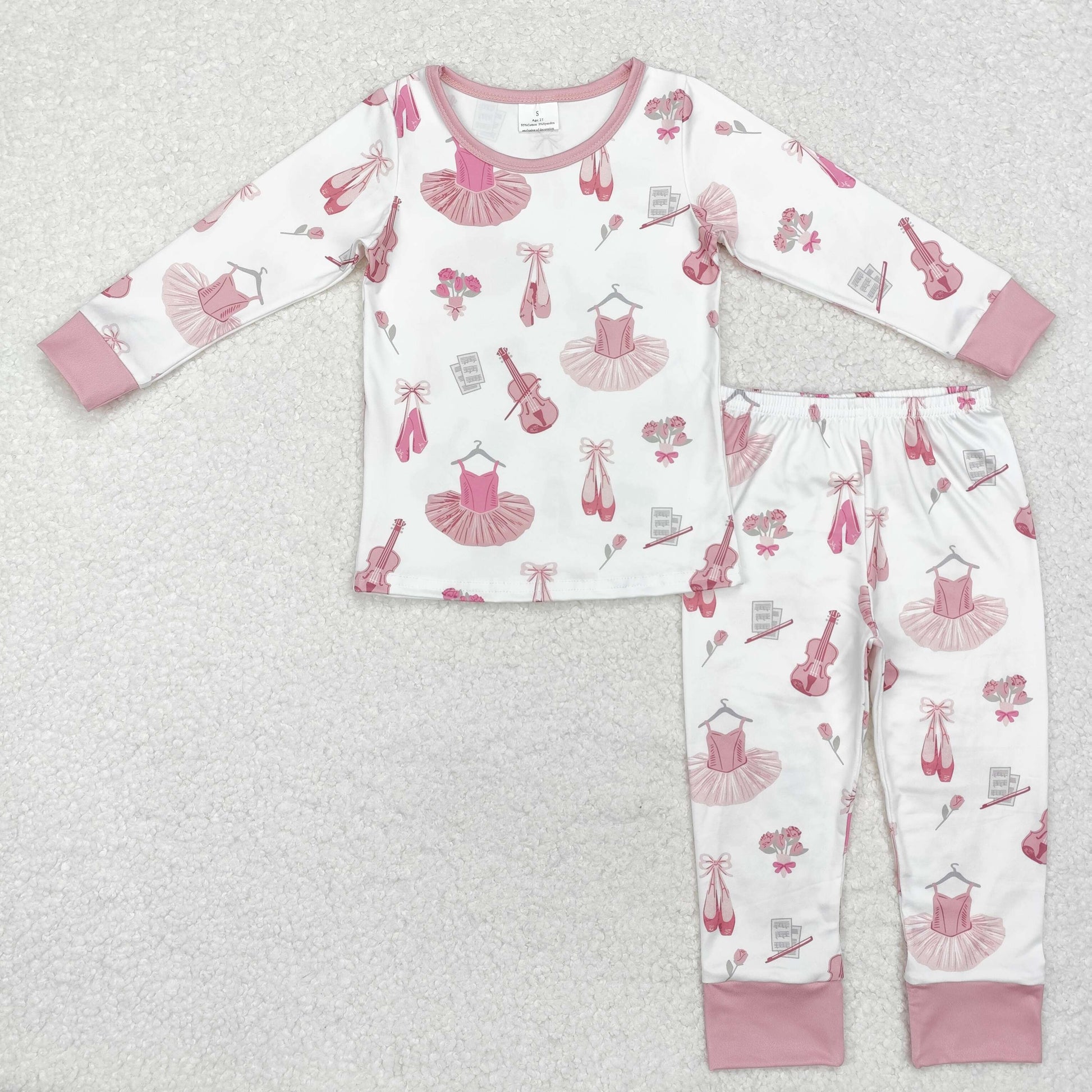 GLP2023 Ballet Shoes Flower Pink White Long Sleeve Pants Girls Pajamas Set RTS 202509
