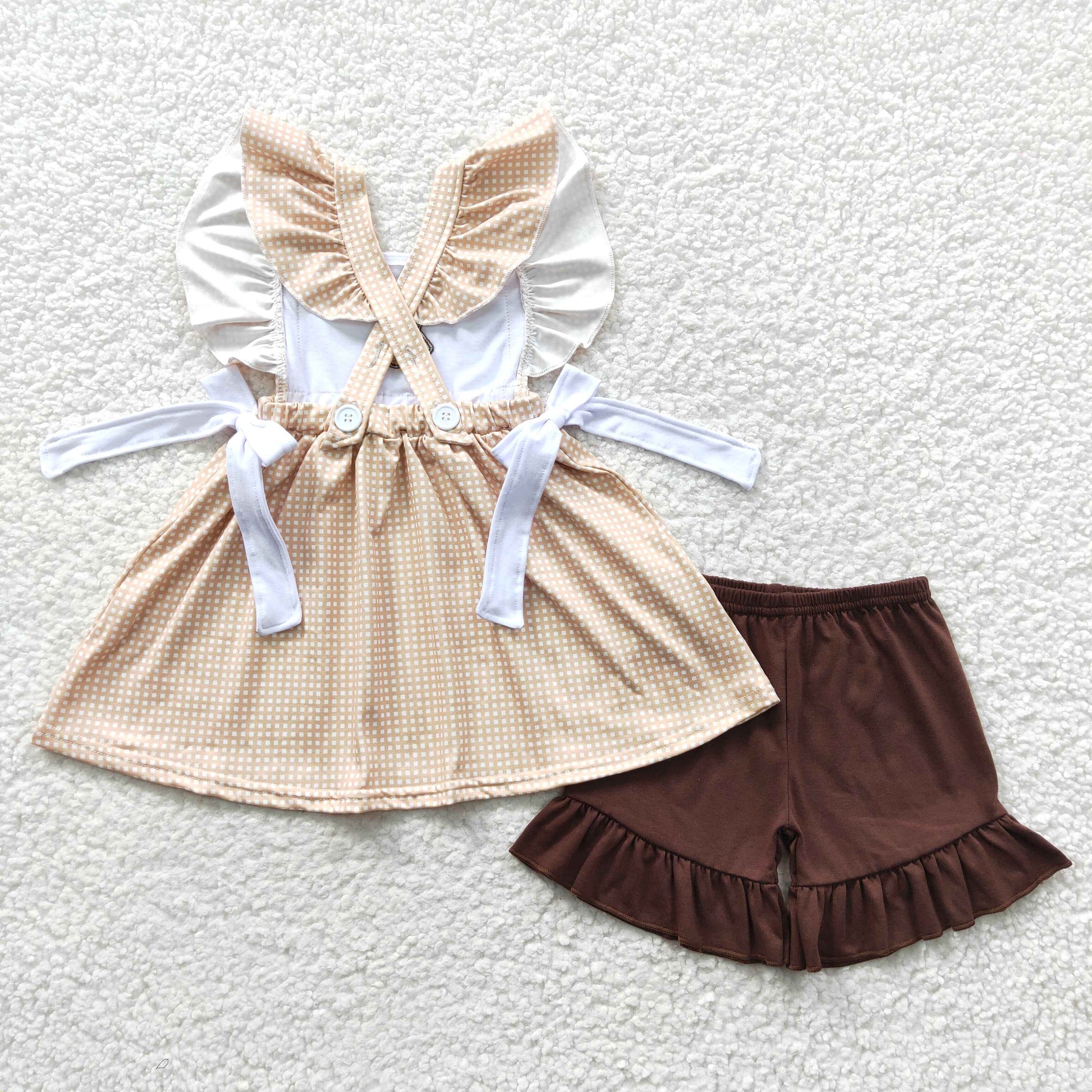 promotion RTS GSSO0233 Cow Brown Embroidery Girls Short Sleeve Shorts Outfits