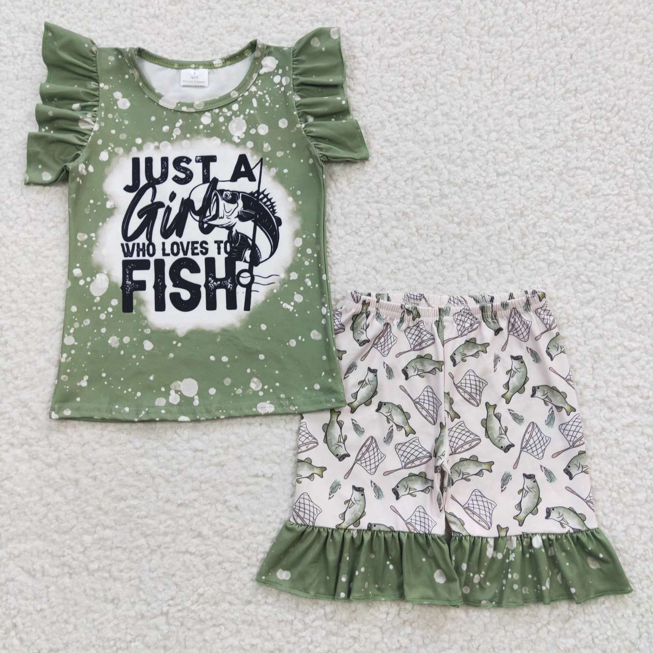 GSSO0295 Green Just A Girl Who Love Fish Girls Short Sleeve Shorts Outfits