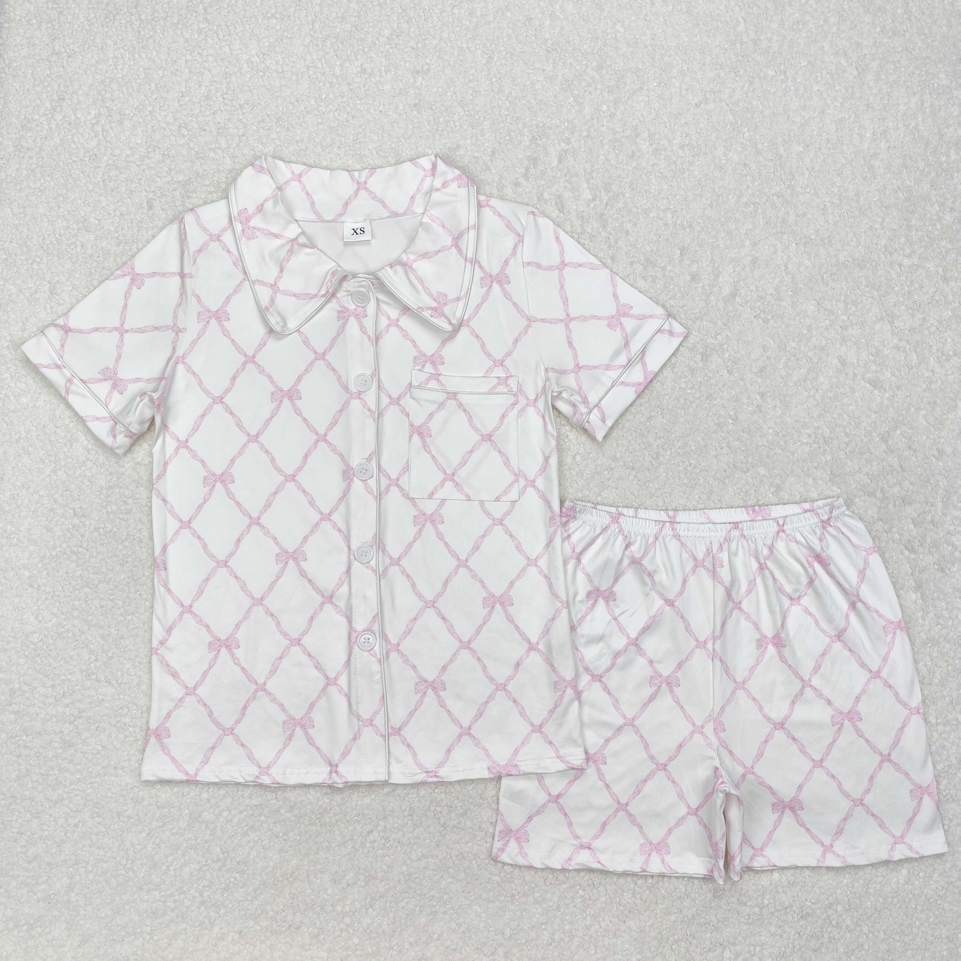 GSSO1708 Adult women's Pink Bow button short sleeve pants pajamas set with pocket RTS 202412