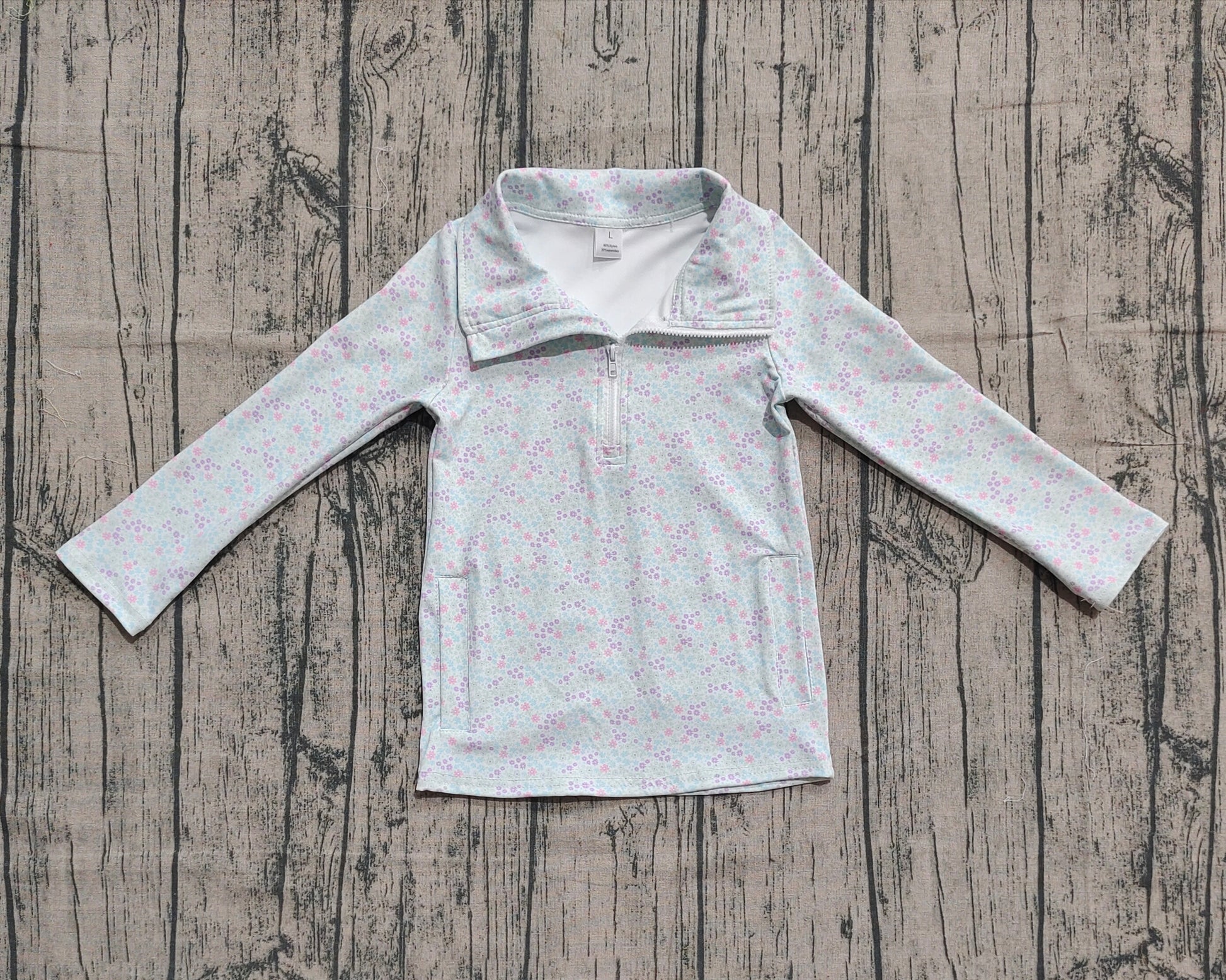 GT1182 Zip up Collar Floral Long Sleeve Girls Yoga Top 202510 RTS