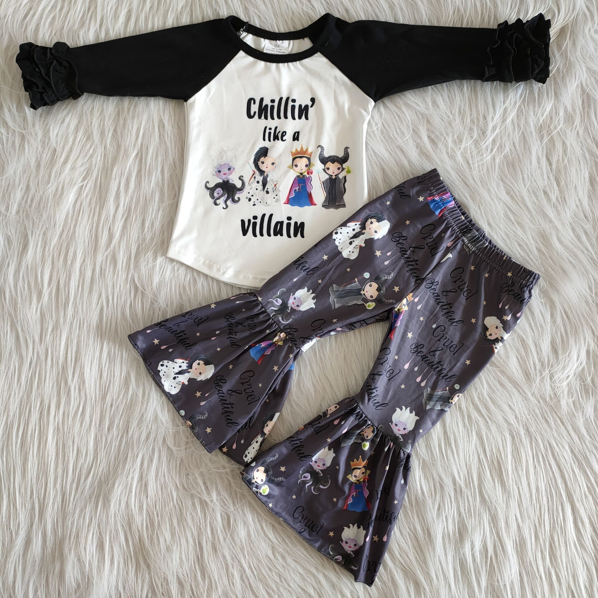 Halloween Raglan Long Sleeve RTS Bell-button Pants 2pcs Toddler Outfits