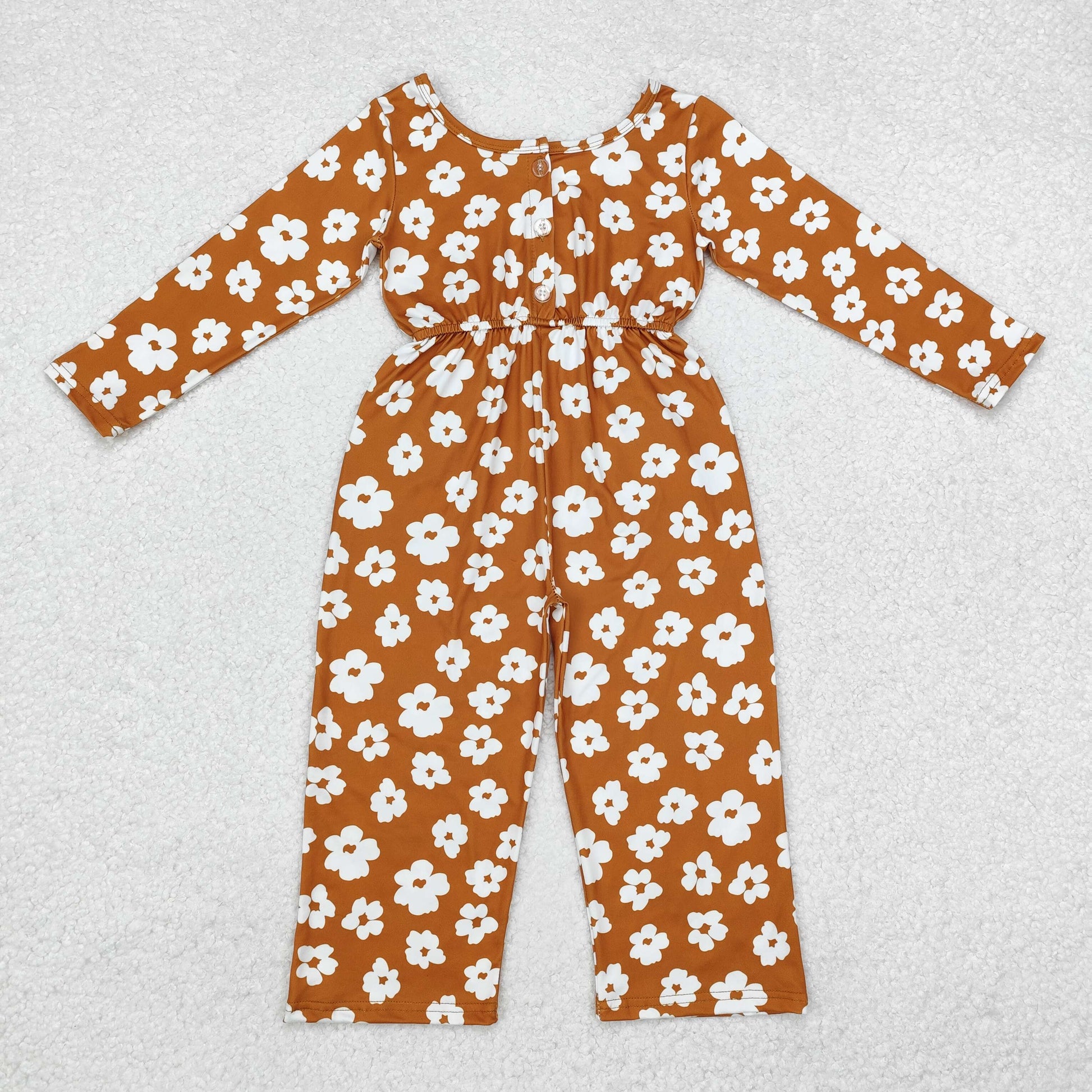 LR1838 Flower Brown Long Sleeve Girls Overalls Jumpsuit RTS 202509