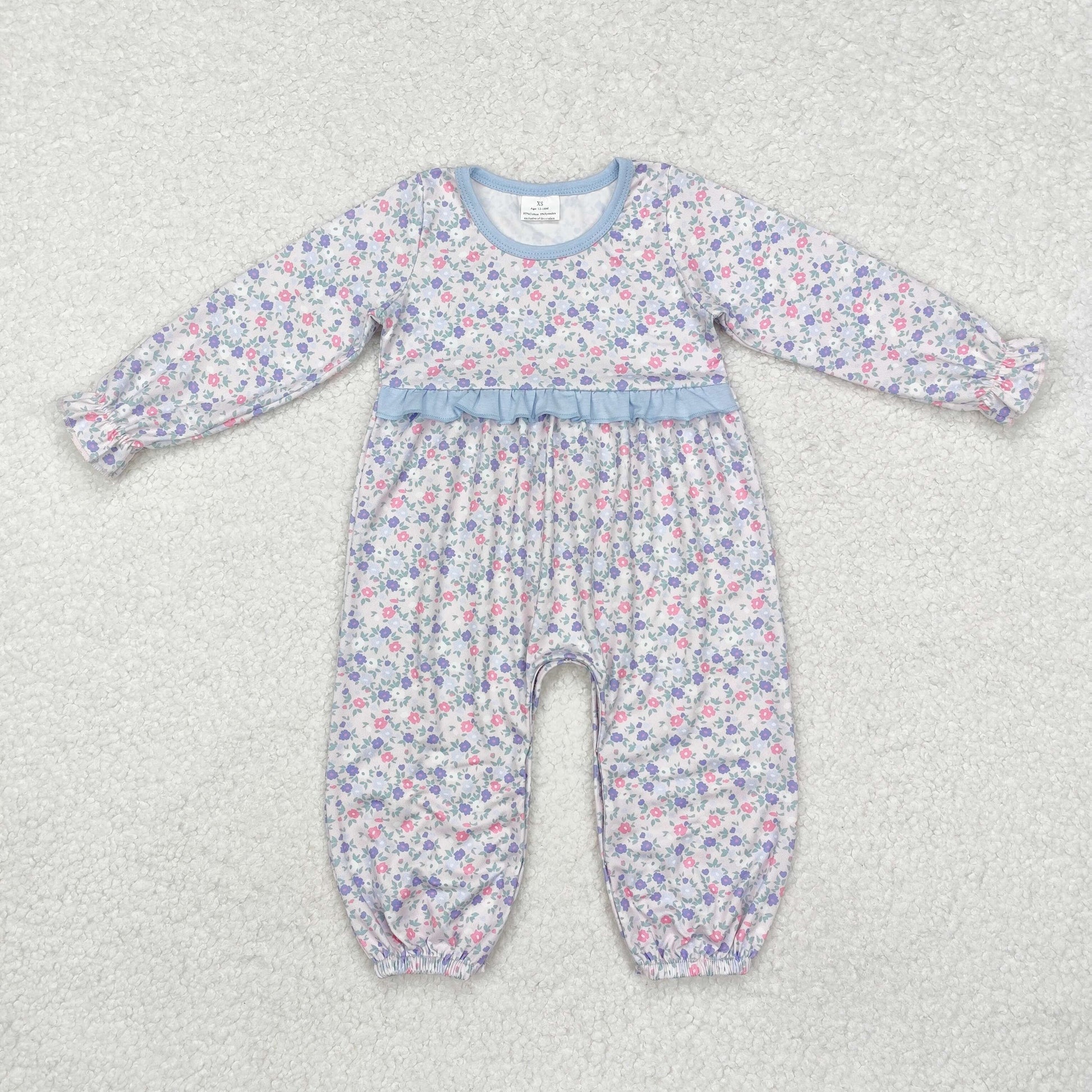 LR2072 Floral Blue Ruffle Long-Sleeved Girls Romper RTS 202509