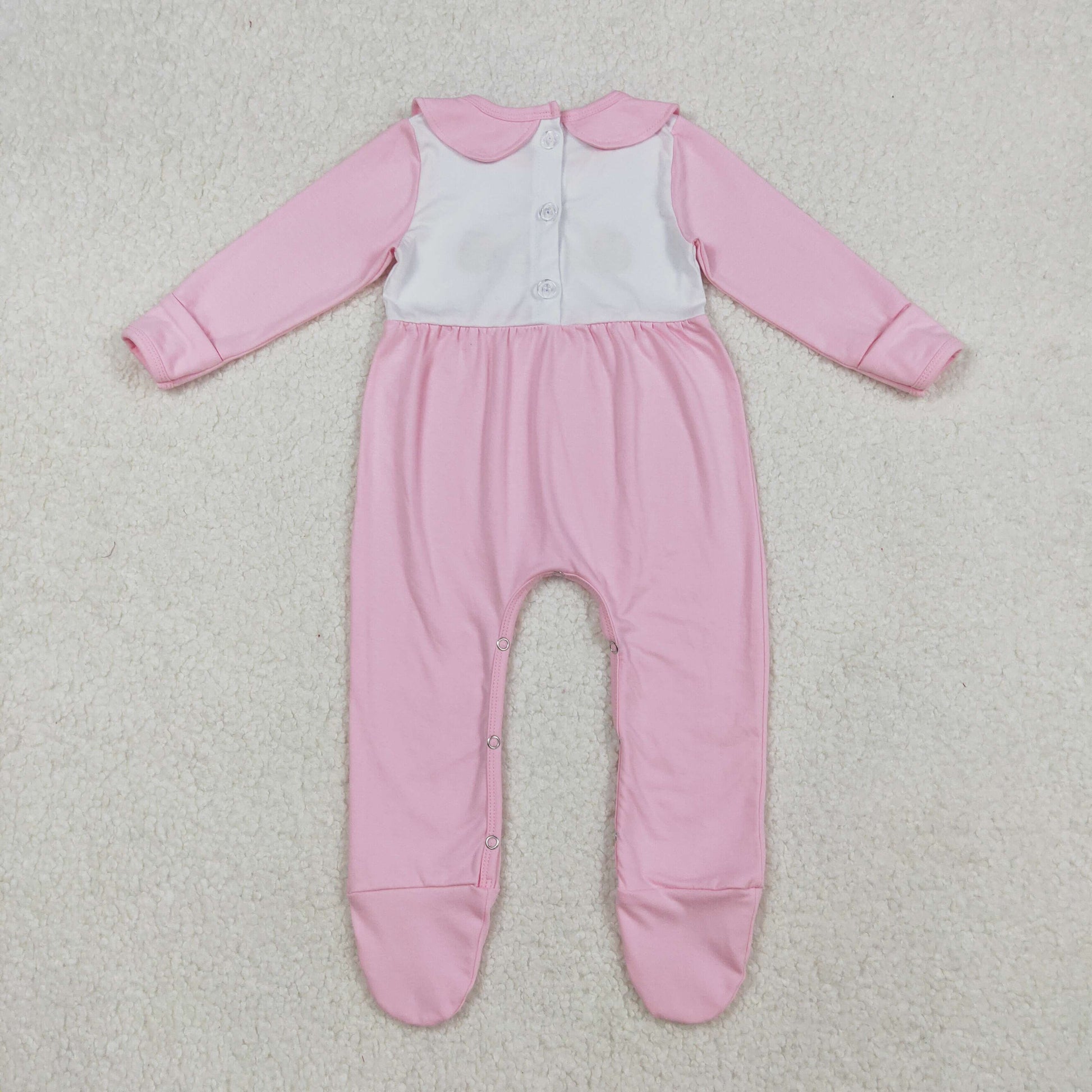 LR2563 Embroidered Turkey Pumpkin Doll Collar Pink Long Sleeve Girls Romper with Socks 202509 RTS