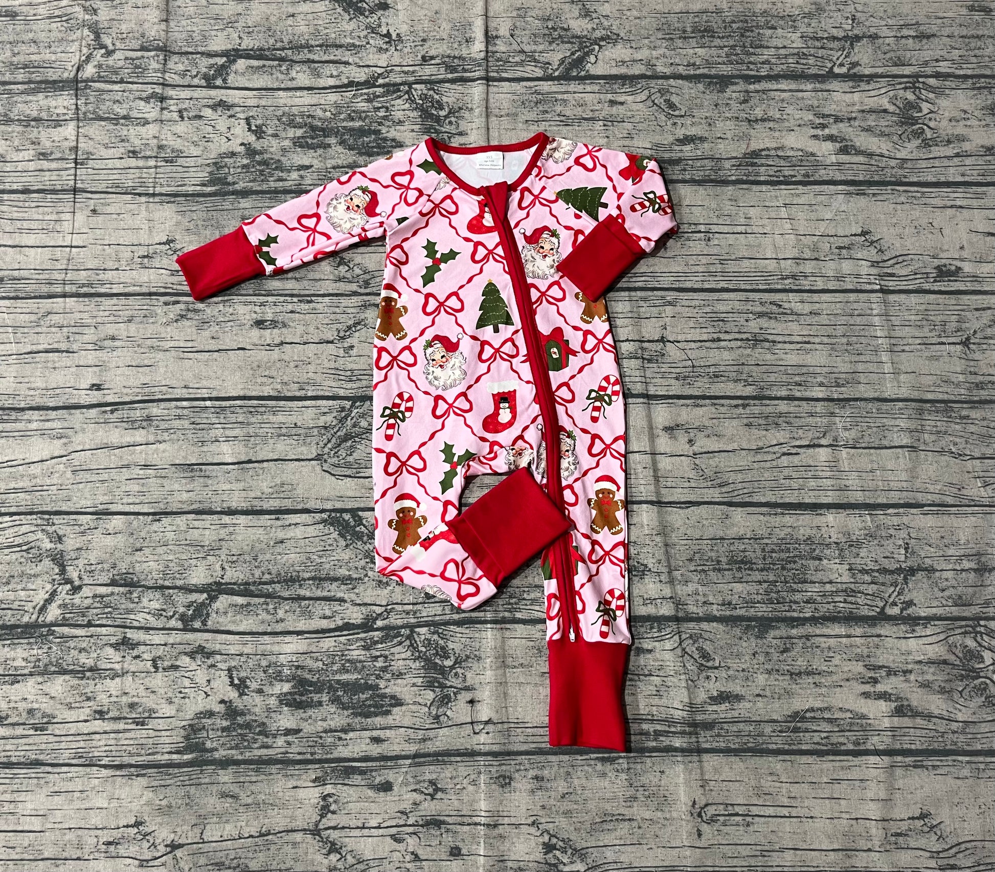 LR2632 Christmas Bows Gifts Red Zipper Long Sleeve Girls Romper 202509 RTS