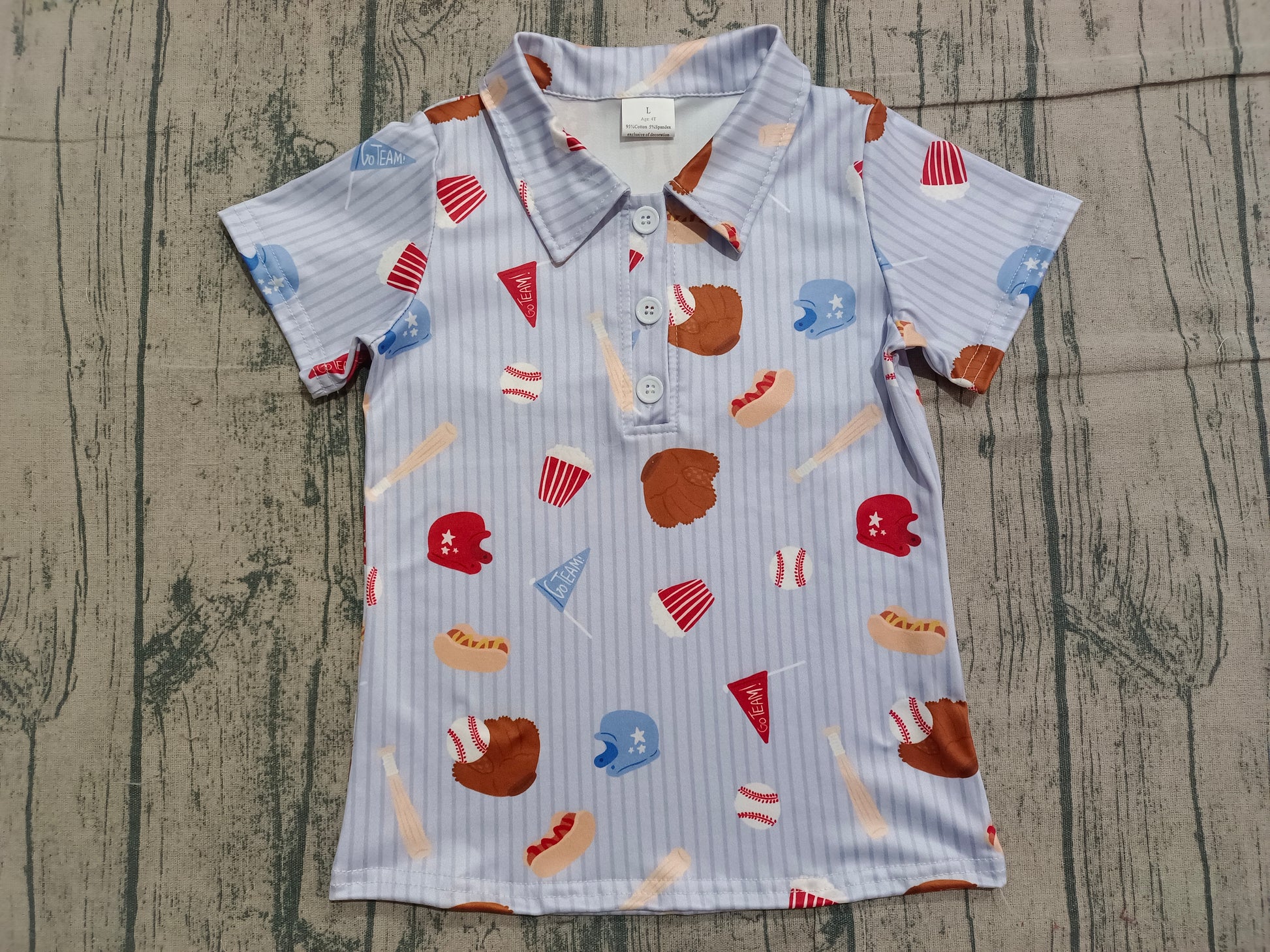 NO MOQ preorder BT1580 Baseball Glove Stripe Blue Polo Short Sleeve Boys Top 202512