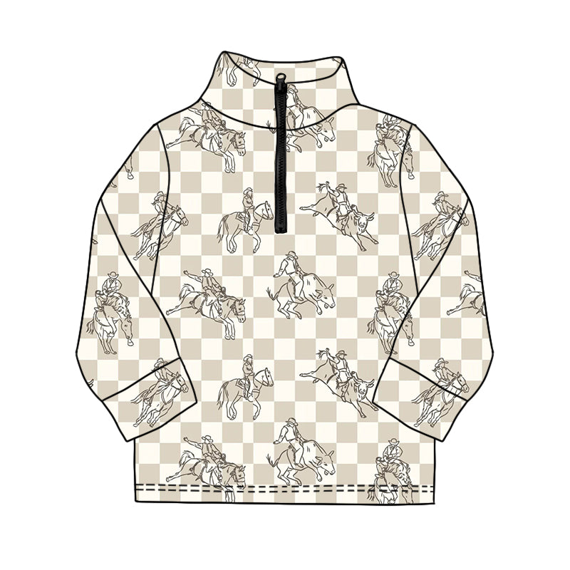 MOQ 5 PCS preorder BT1594 Cowboy Horse Khaki Plaid Zip Collar Long Sleeve Boys Top 202511