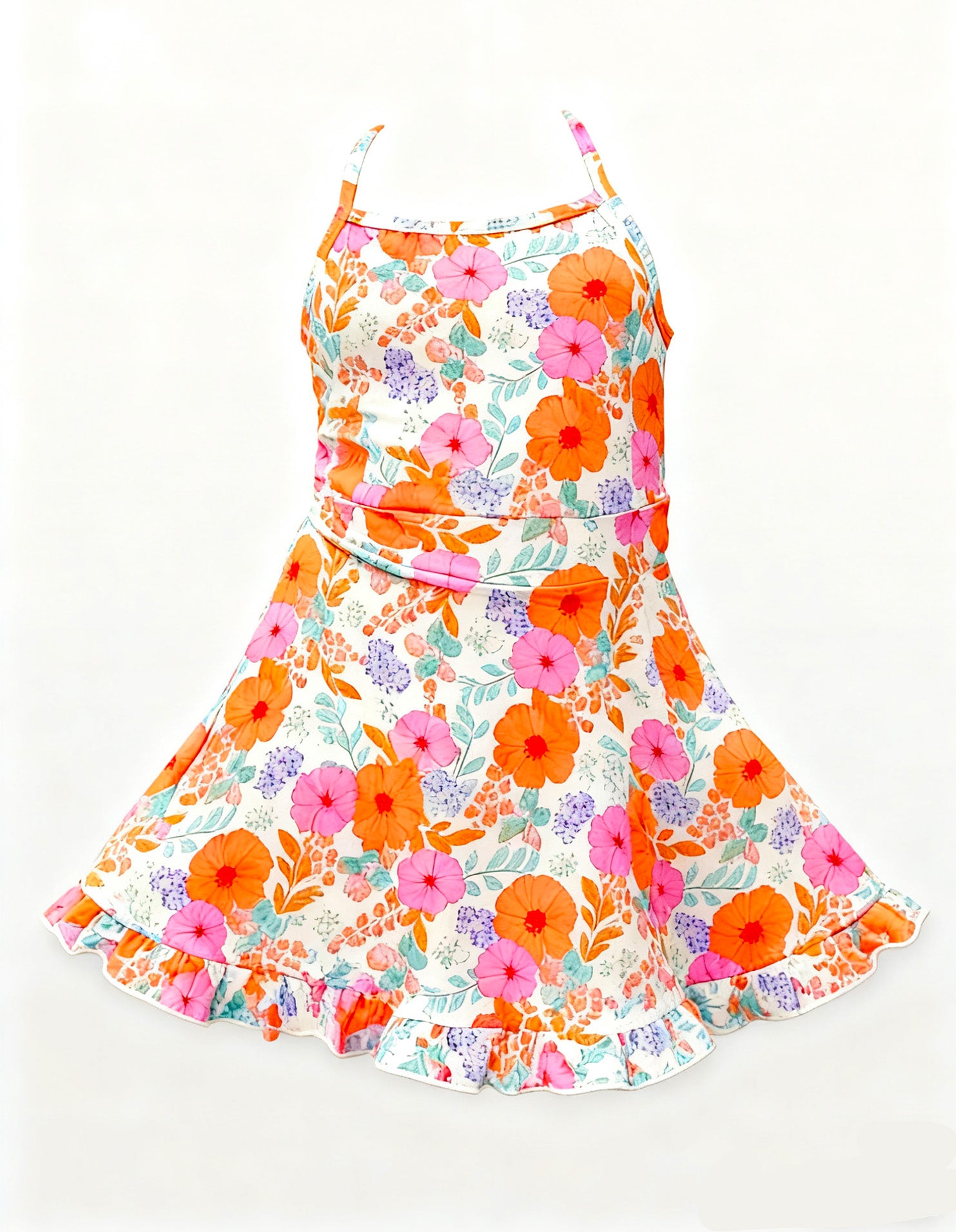 MOQ 5 PCS preorder GSD3054 Orange Flower Yoga Sleeveless Dresses for Girls 202511