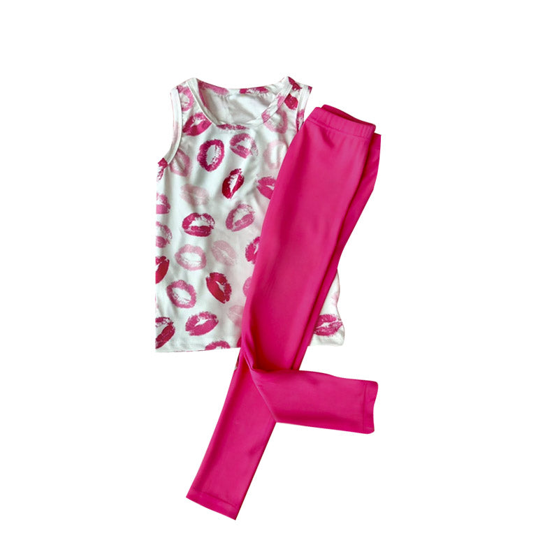 MOQ 5 PCS Preorder GSPO2191 Valentines Day Lips Lipstick Vest Rose Red Leggings Pants Girls Sets 202511