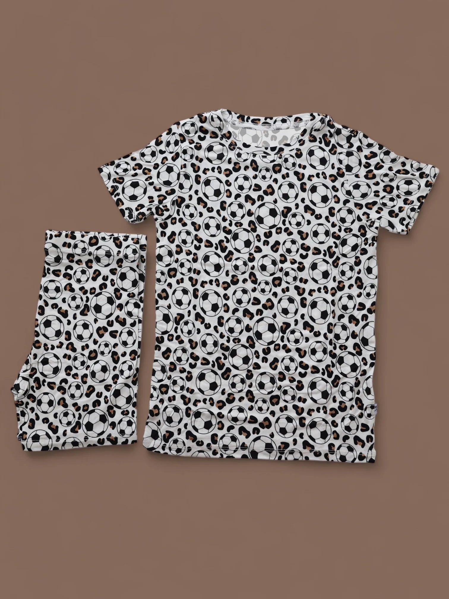 MOQ 5 PCS Preorder GSSO2849 Leopard Soccer White Short Sleeve Shorts Girls Sets 202511