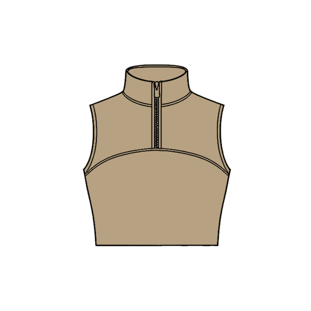 MOQ 5 PCS Preorder GT1523 Solid Khaki Zip Collar Sleeveless Girls Yoga Tops 202511