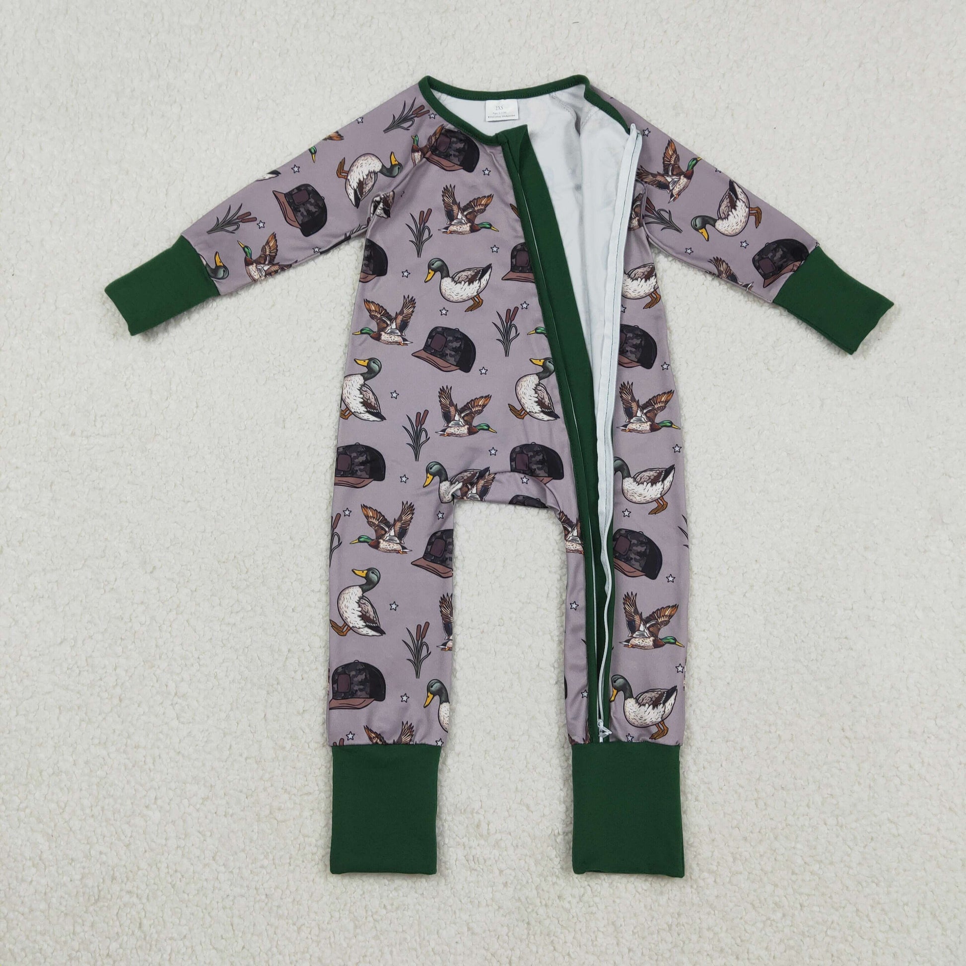 LR2886 Duck Hunting Dark Green Gray Long-Sleeved Boys Romper 202512 RTS