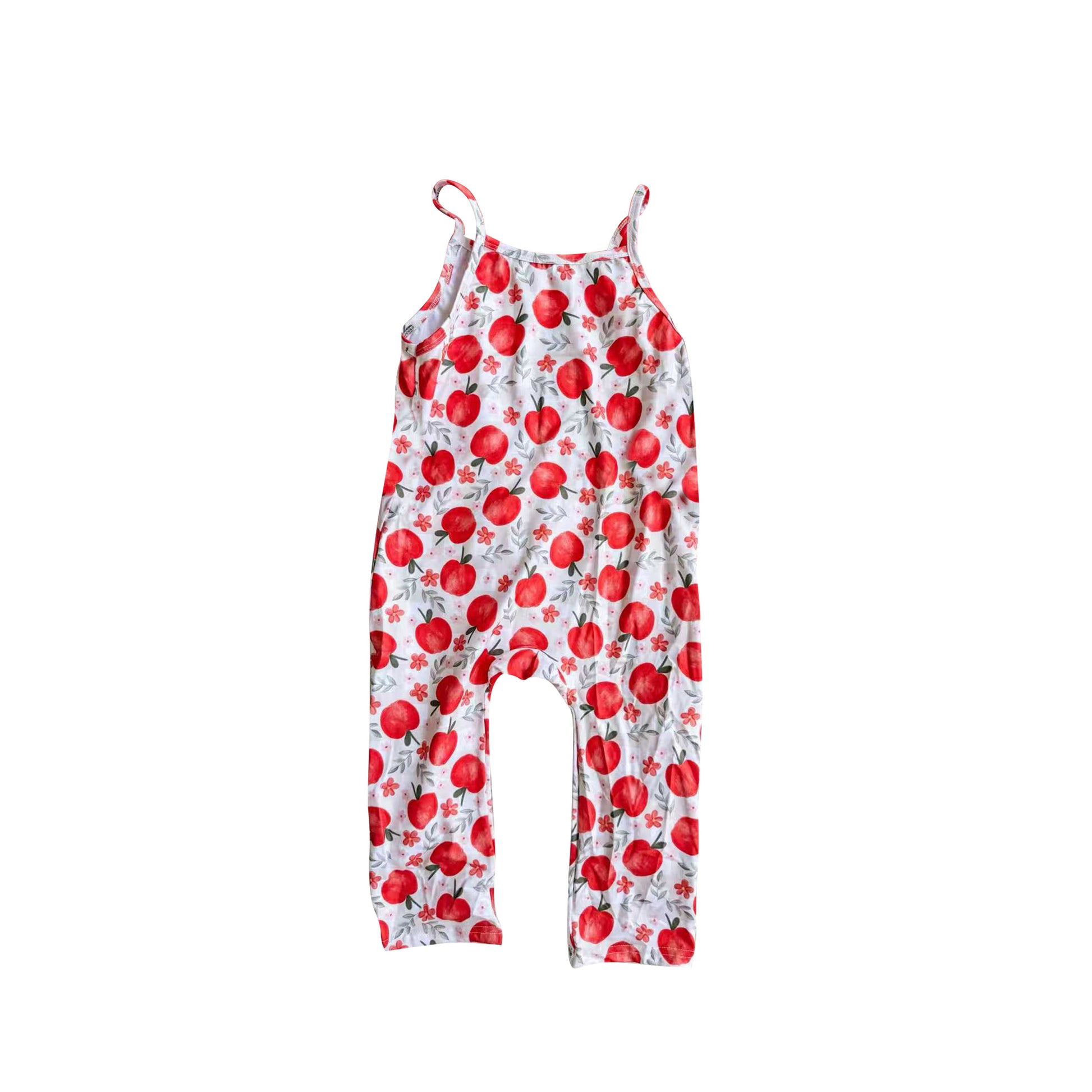 MOQ 5 PCS Preorder SR3516 Flower Leaf Apple White Sleeveless Girls Overalls Jumpsuits 202511
