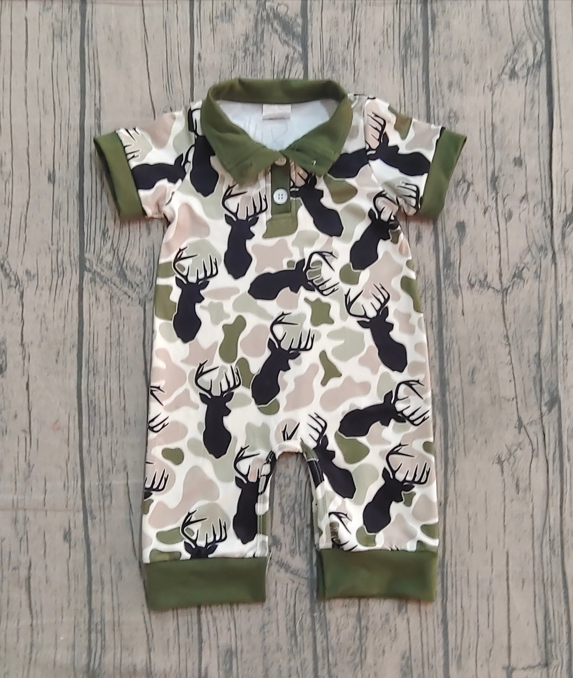 NO MOQ preorder SR3636 Deer Hunting Green Camouflage Polo Short Sleeve Boys Romper 202512