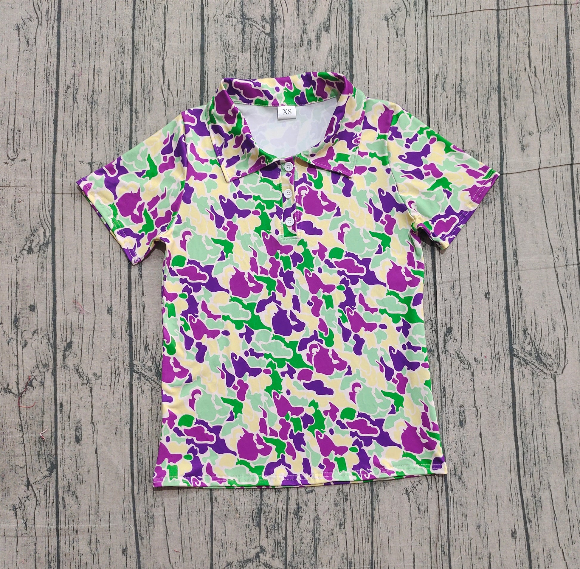 NO MOQ Preorder BT1452 Adult Male Mardi Gras Purple Camouflage Polo Short Sleeve Top 202510