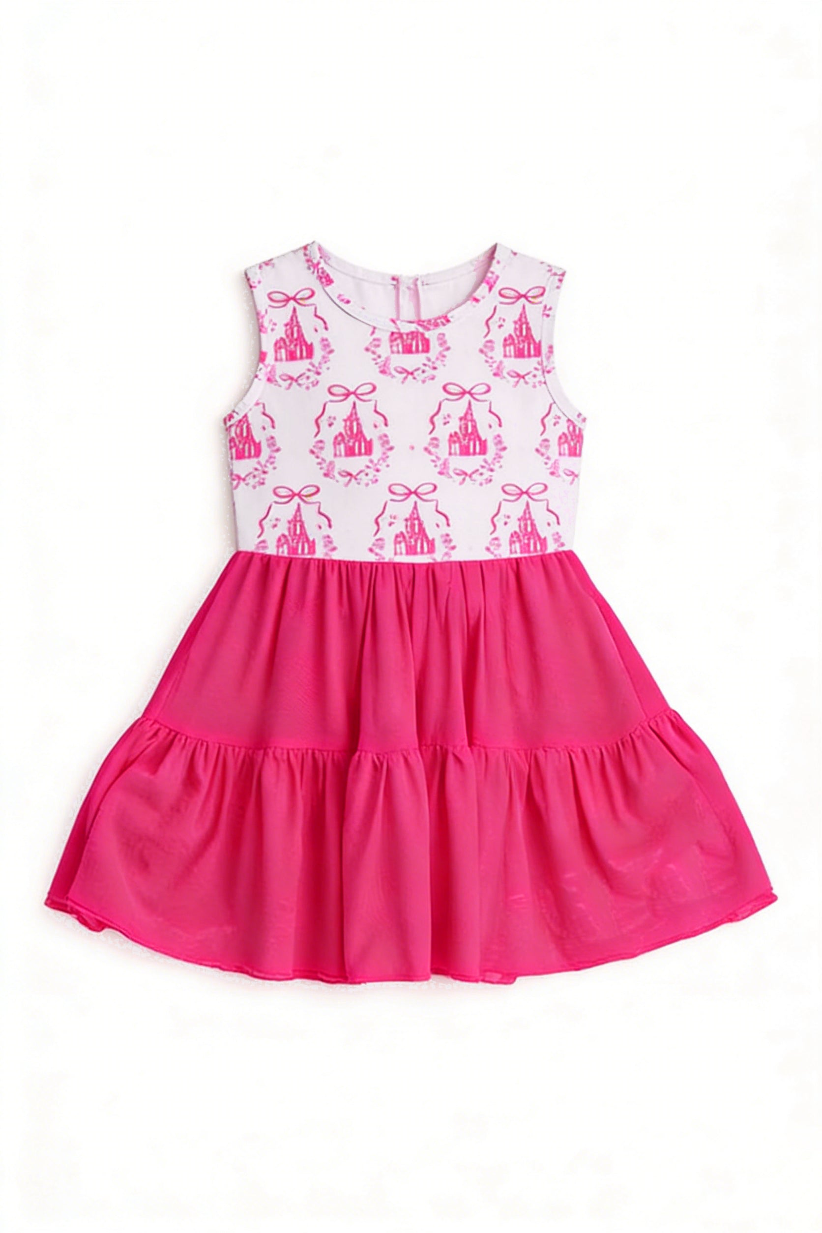 MOQ 5 preorder GSD3461 Bow Castle Pattern Rose Red Yoga Sleeveless Dresses for Girls 202512