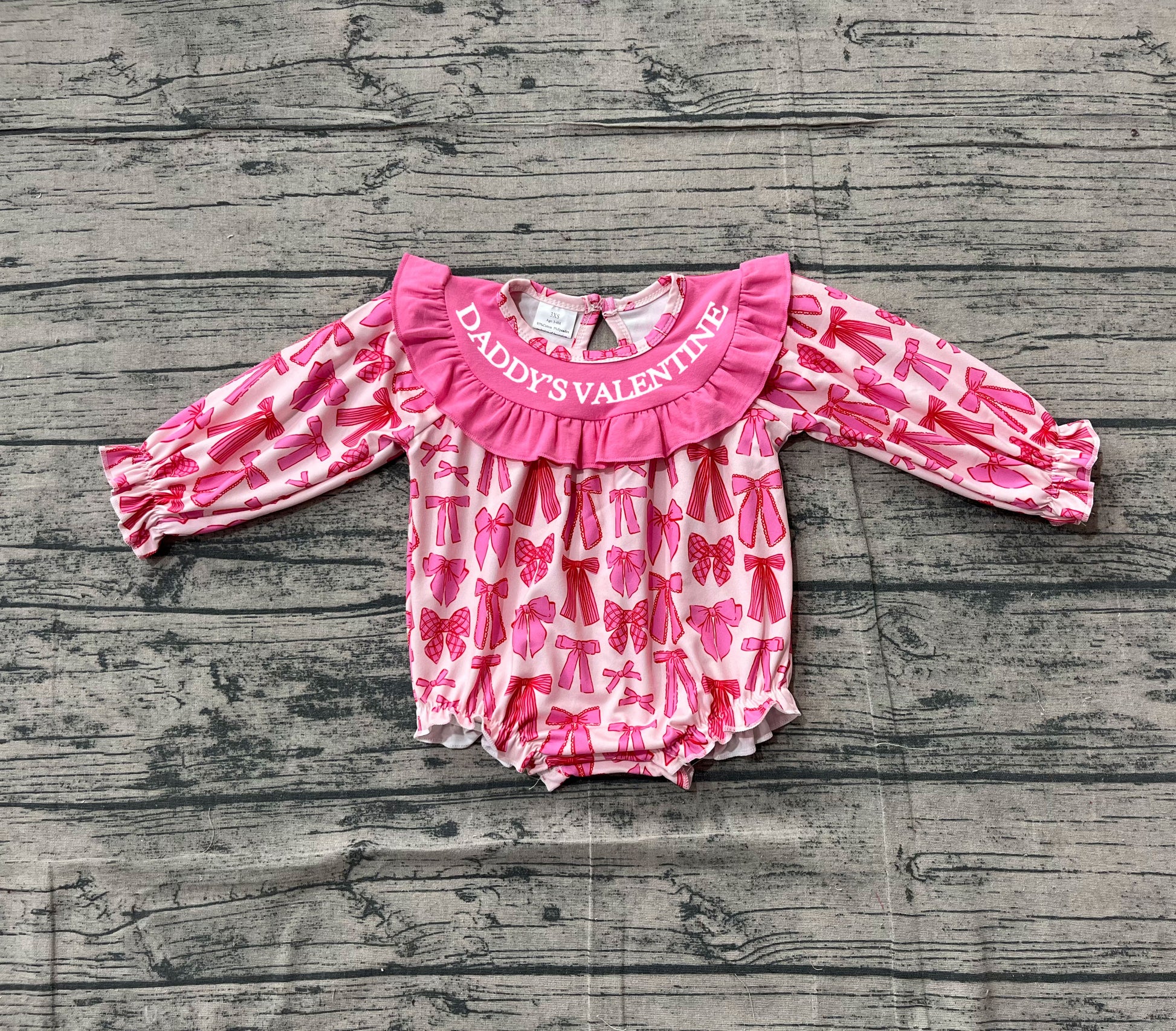NO MOQ preorder LR2842 Smocked Valentines Day Bows Rose Red Ruffle Long-Sleeved Girls Bubble Romper 202511