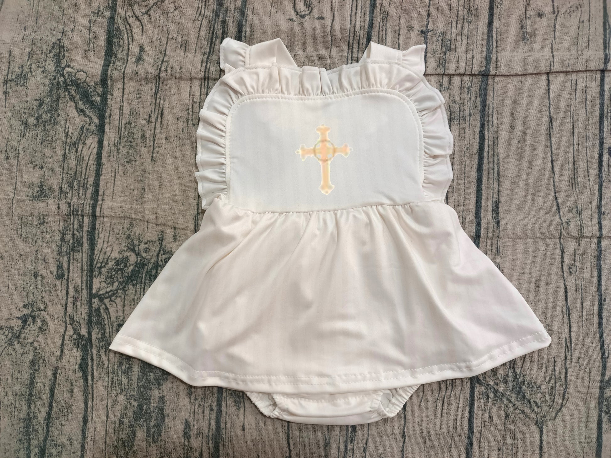 NO MOQ Preorder SR3306 Embroidered Easter Cross Ruffle Sleeveless Girls Bubble Romper 202512 Sibling