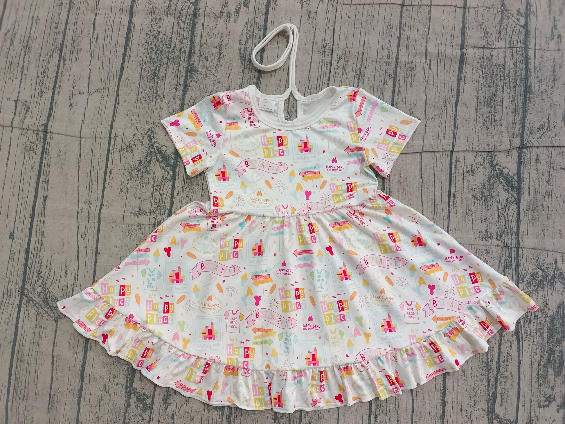 NO MOQ Preorder GSD2873 Best Day Ever Letter Castle White Short Sleeve Dresses for Girls 202512