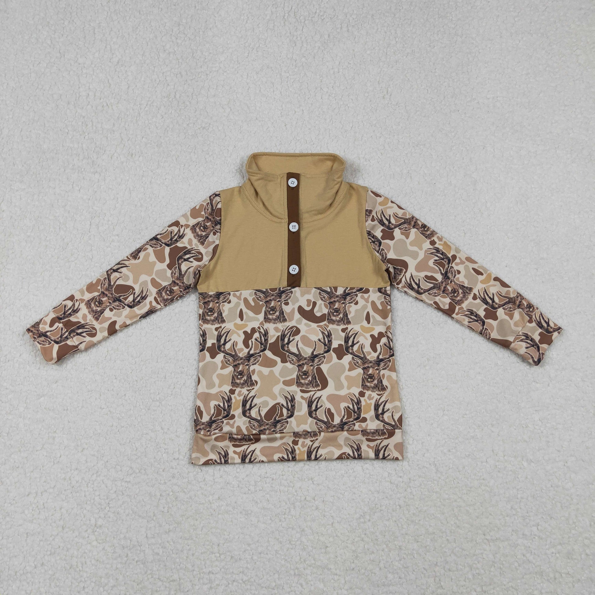 BT1338-XS-3XL Deer Hunting Cowboy Button Zipper Camouflage Long Sleeve Boys Top 202509