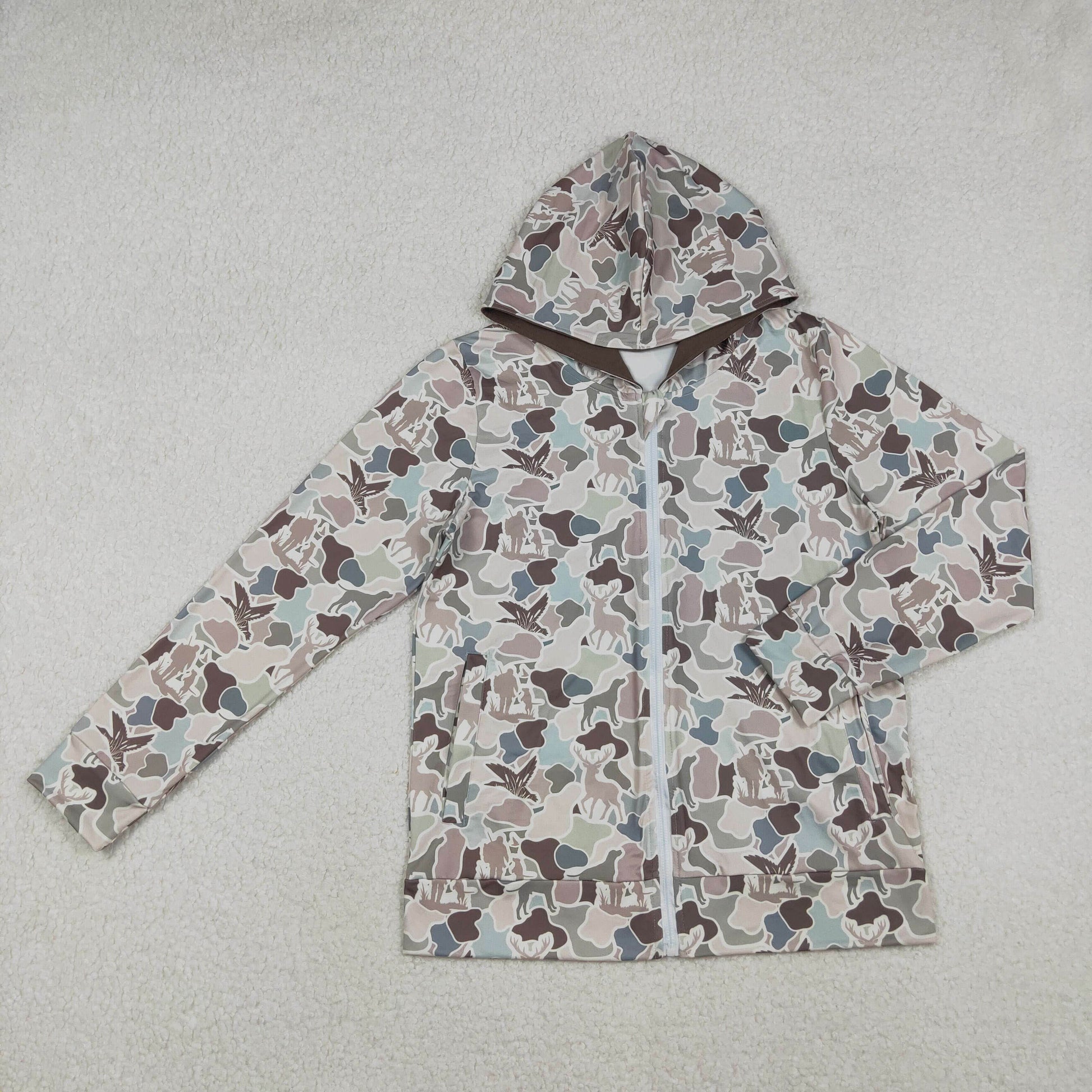 BT1392 Adult Male Puppy Duck Hunting Camouflage Hooded Zipper Long Sleeve Top 202510 RTS