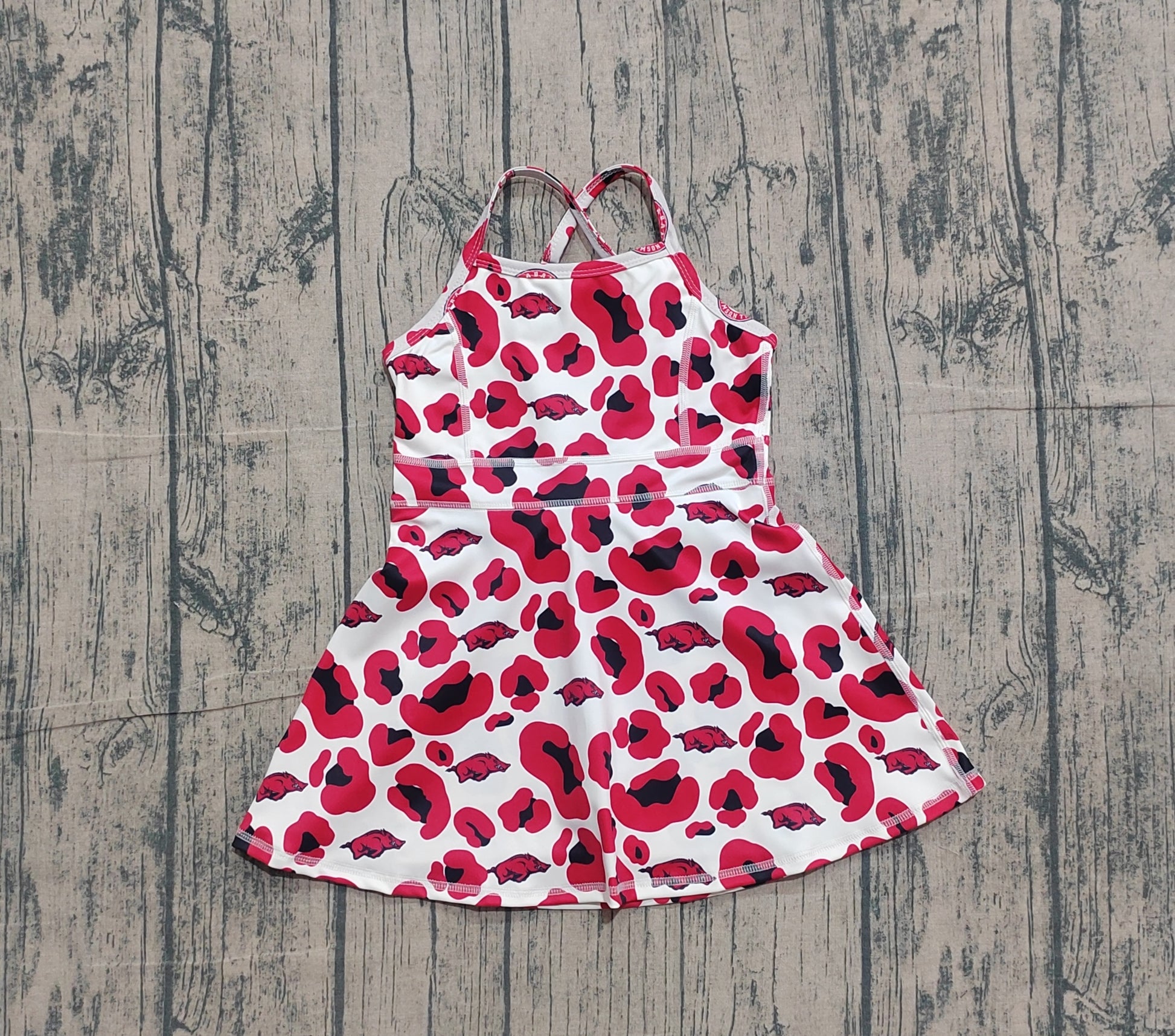 NO MOQ preorder GSD3636 Go Team Wild Boar Red Black Leopard Yoga Sleeveless Dresses for Girls 202601