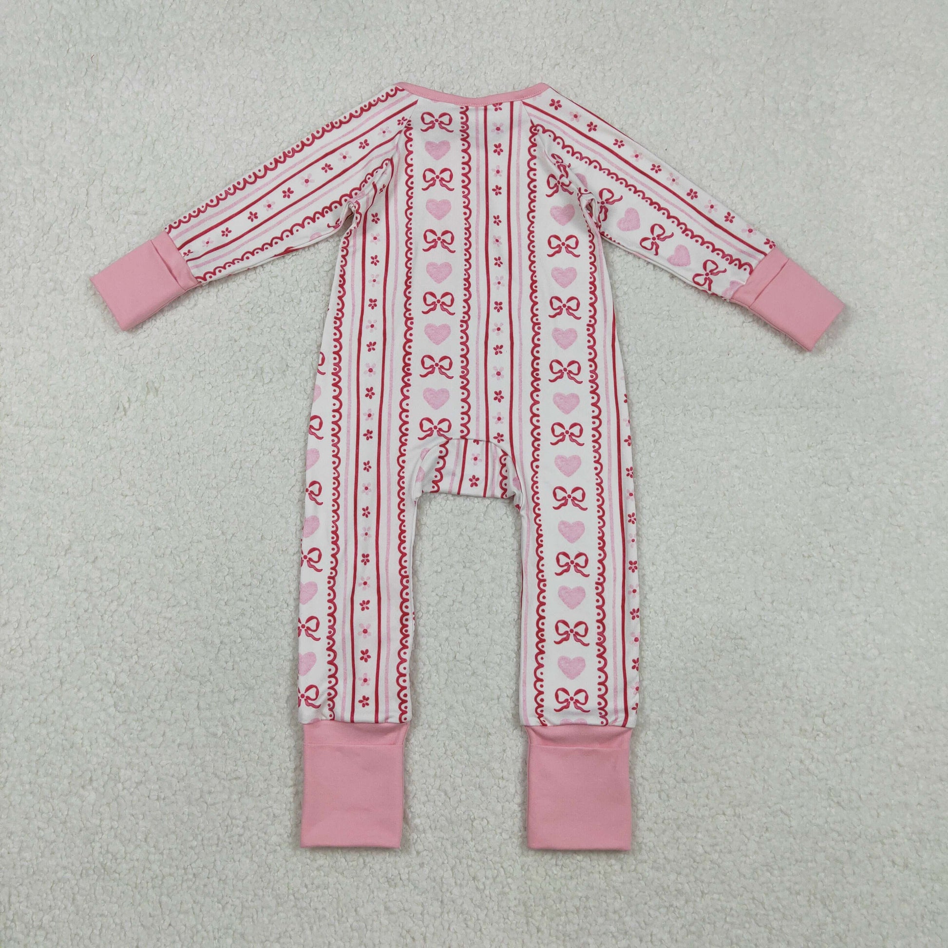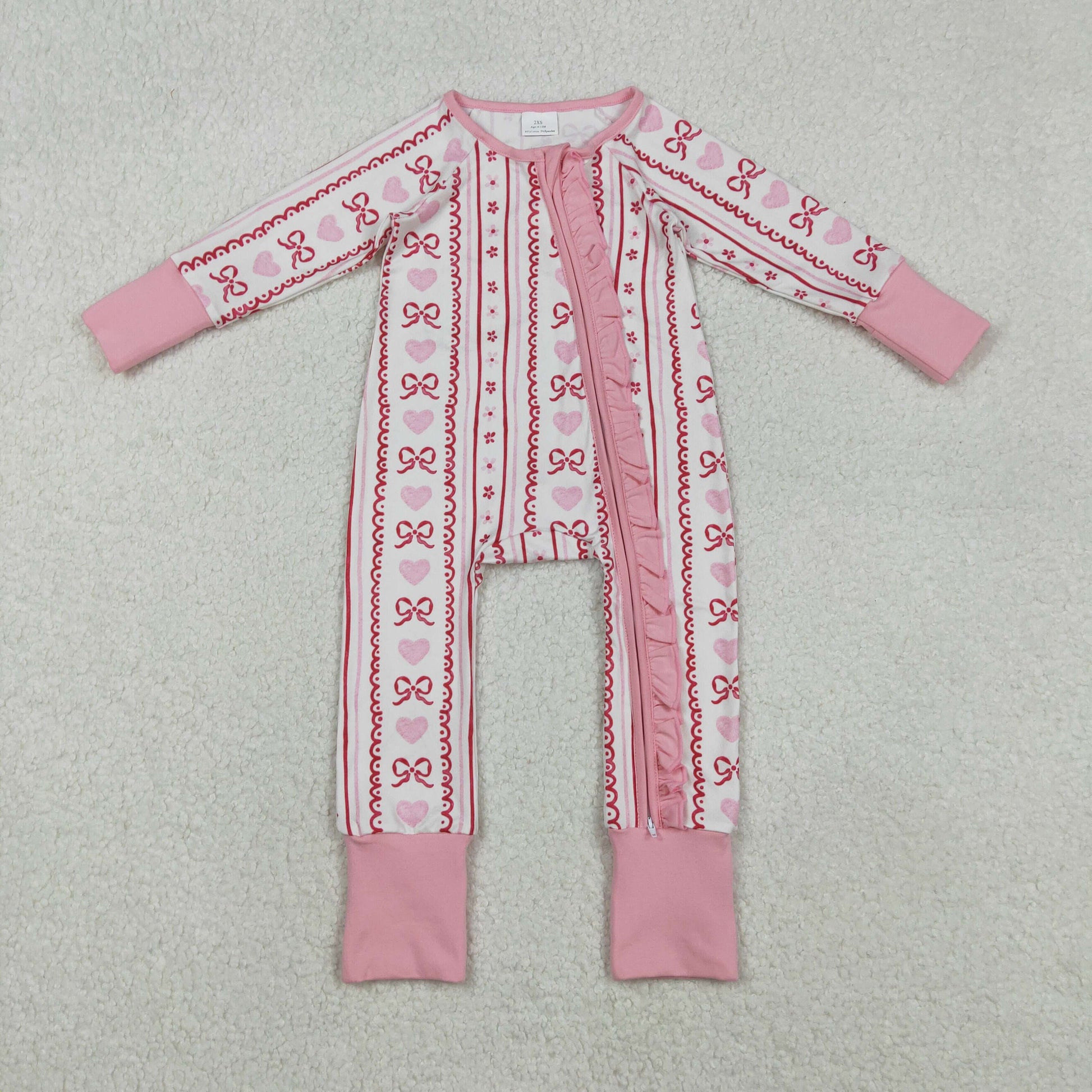 LR2781 Valentine's Day Love Bows Pink Ruffle Long-Sleeved Girls Romper 202511 RTS