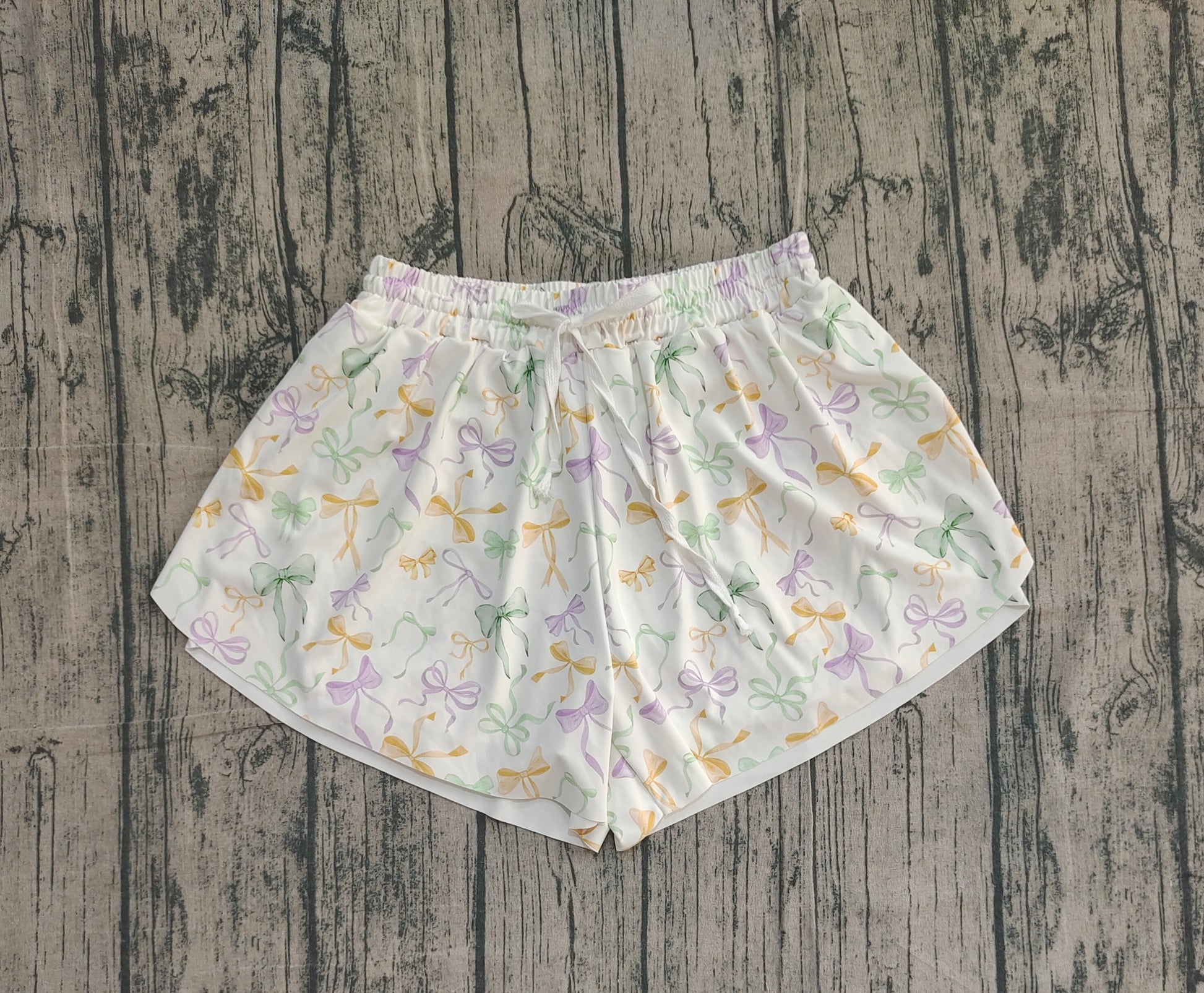 NO MOQ preorder SS0679 Mardi Gras Adult Female Yellow Green Purple Bows White Yoga Shorts 202510