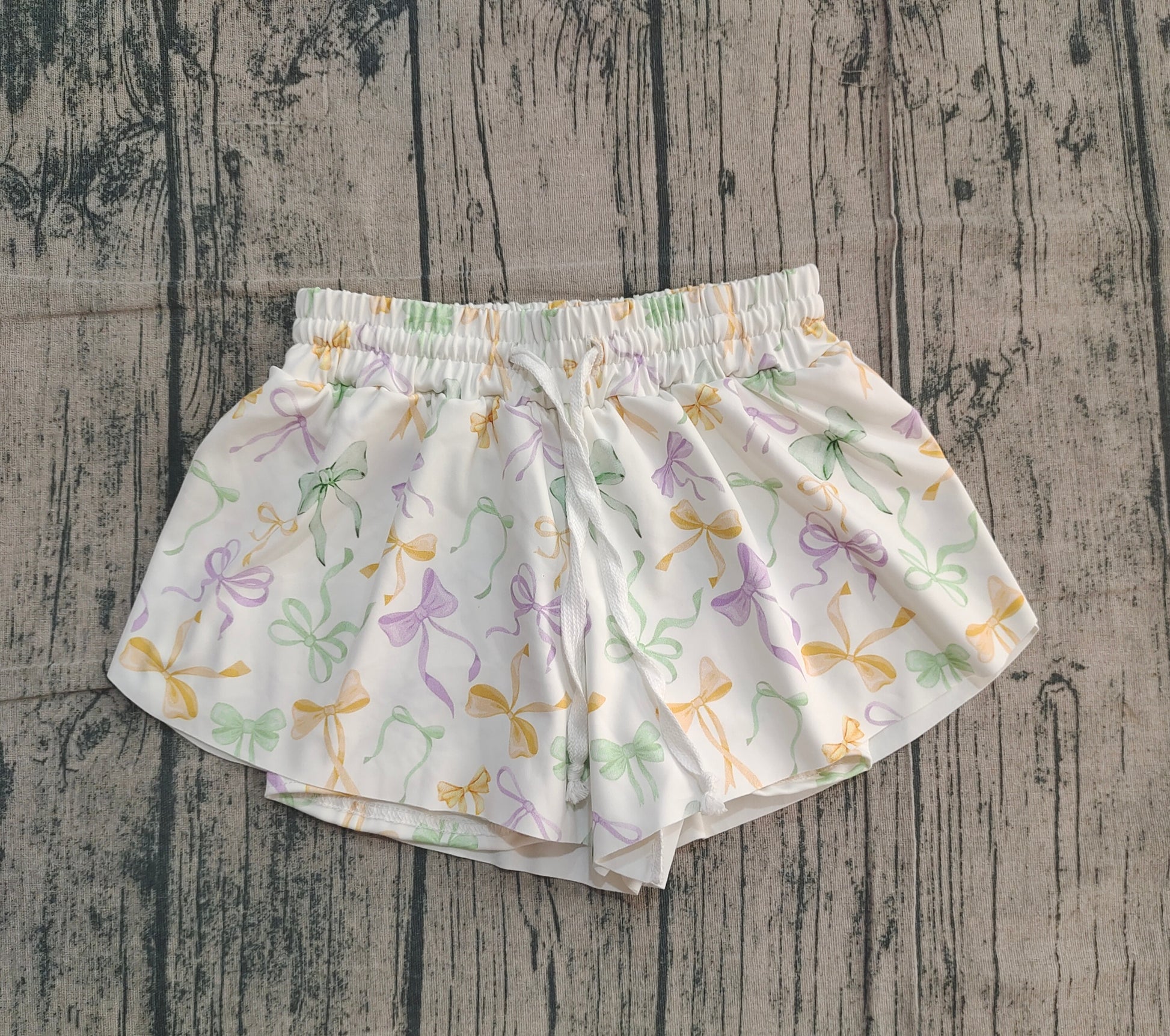 NO MOQ preorder SS0682 Mardi Gras Yellow Green Purple Bows White Girls Yoga Shorts 202510