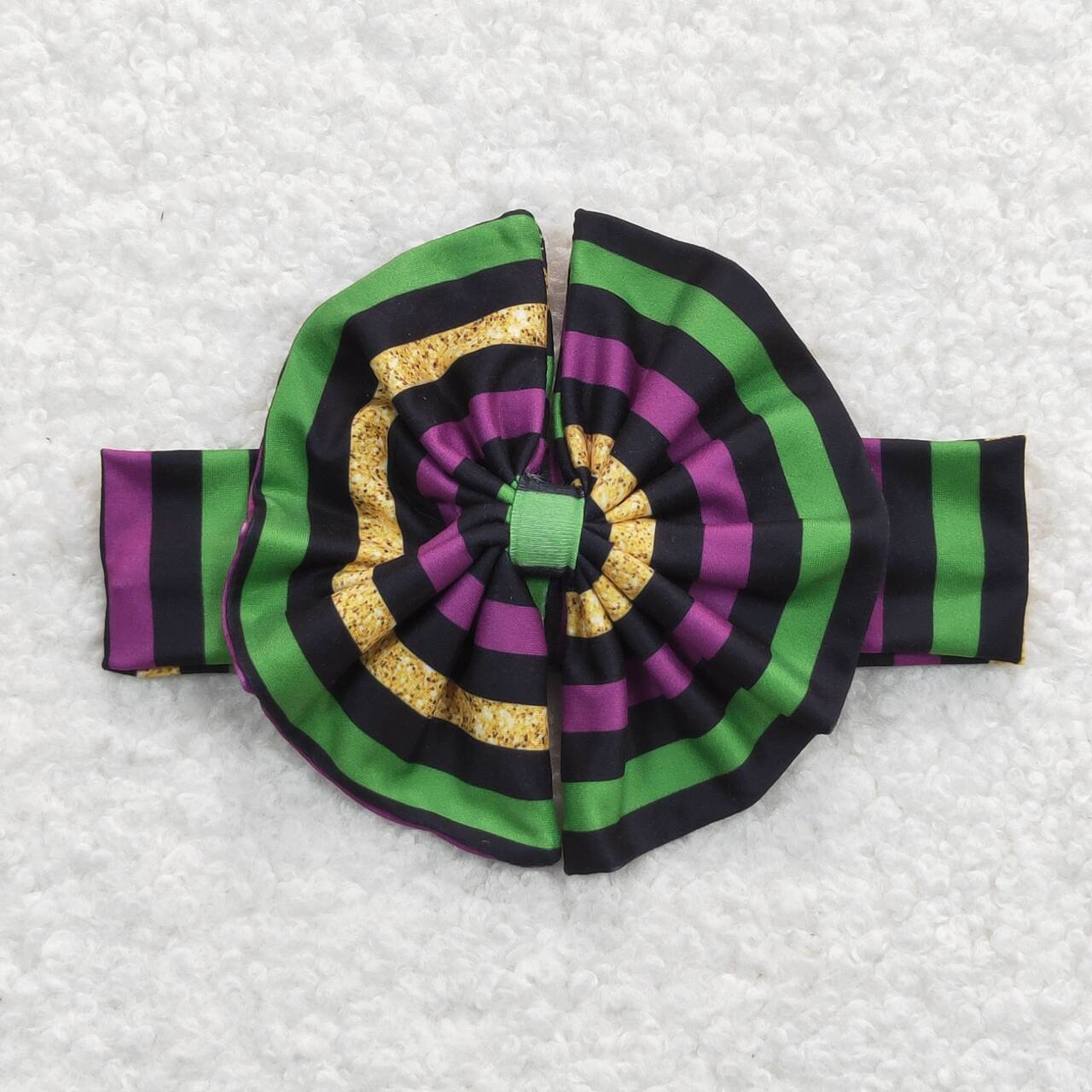 P0405 Mardi Gras Stripes Purple Green Girls Legging Long Pants Bell Bottom headband