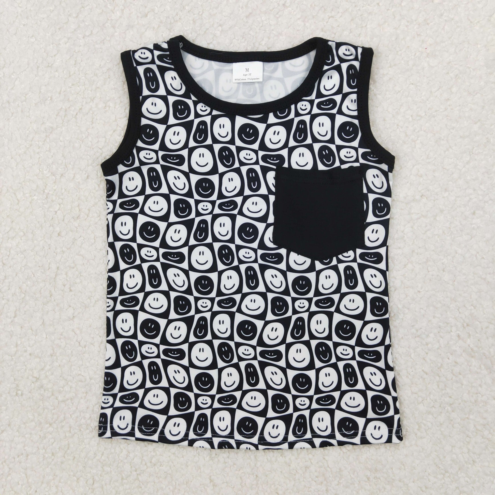 BT1192 Black White Plaid Smile Face sleeveless top Boys Boutique outfit 202503 RTS