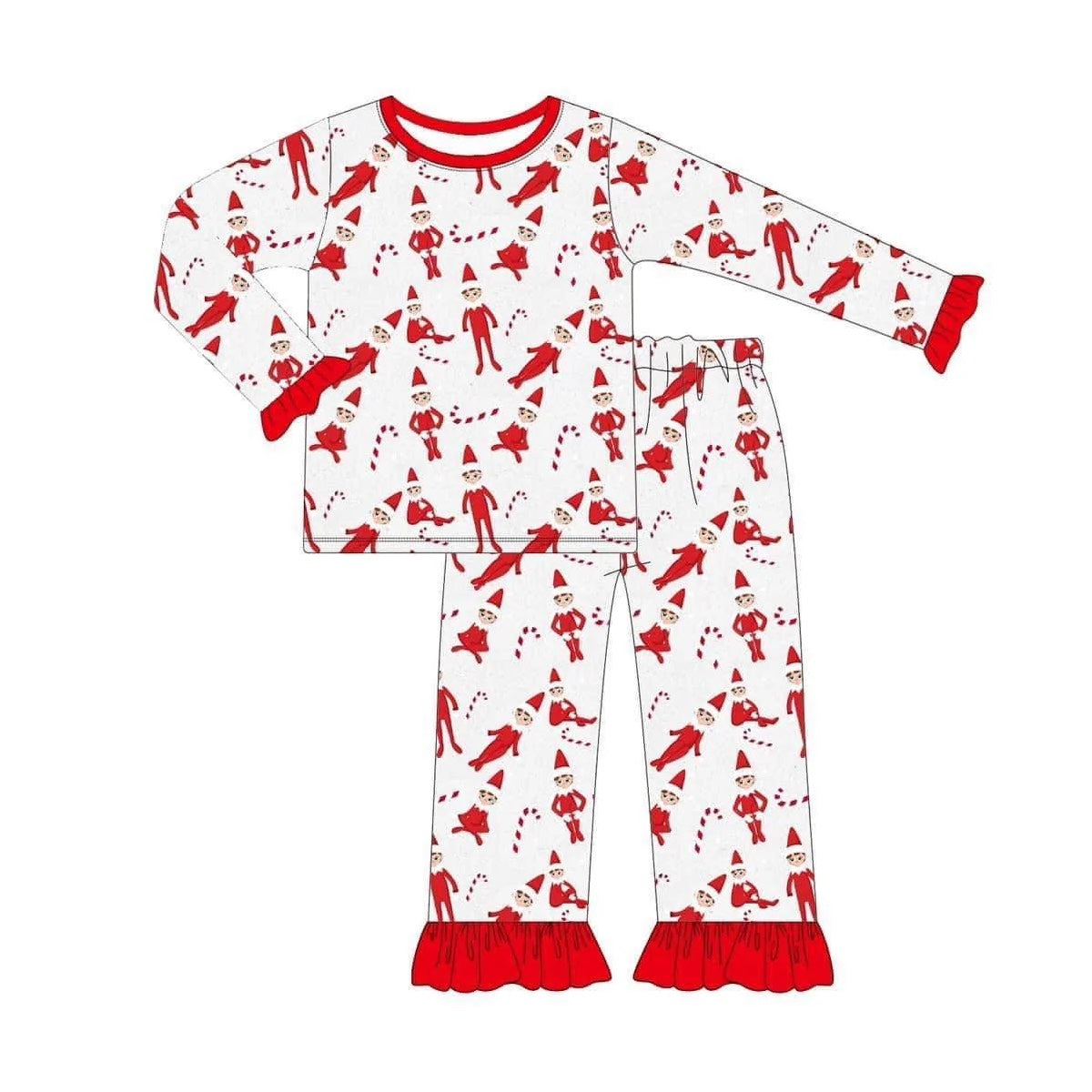 Preorder GLP1866 Christmas Elf Crutch lace Red long sleeve trousers pajamas set high quality wholesale
