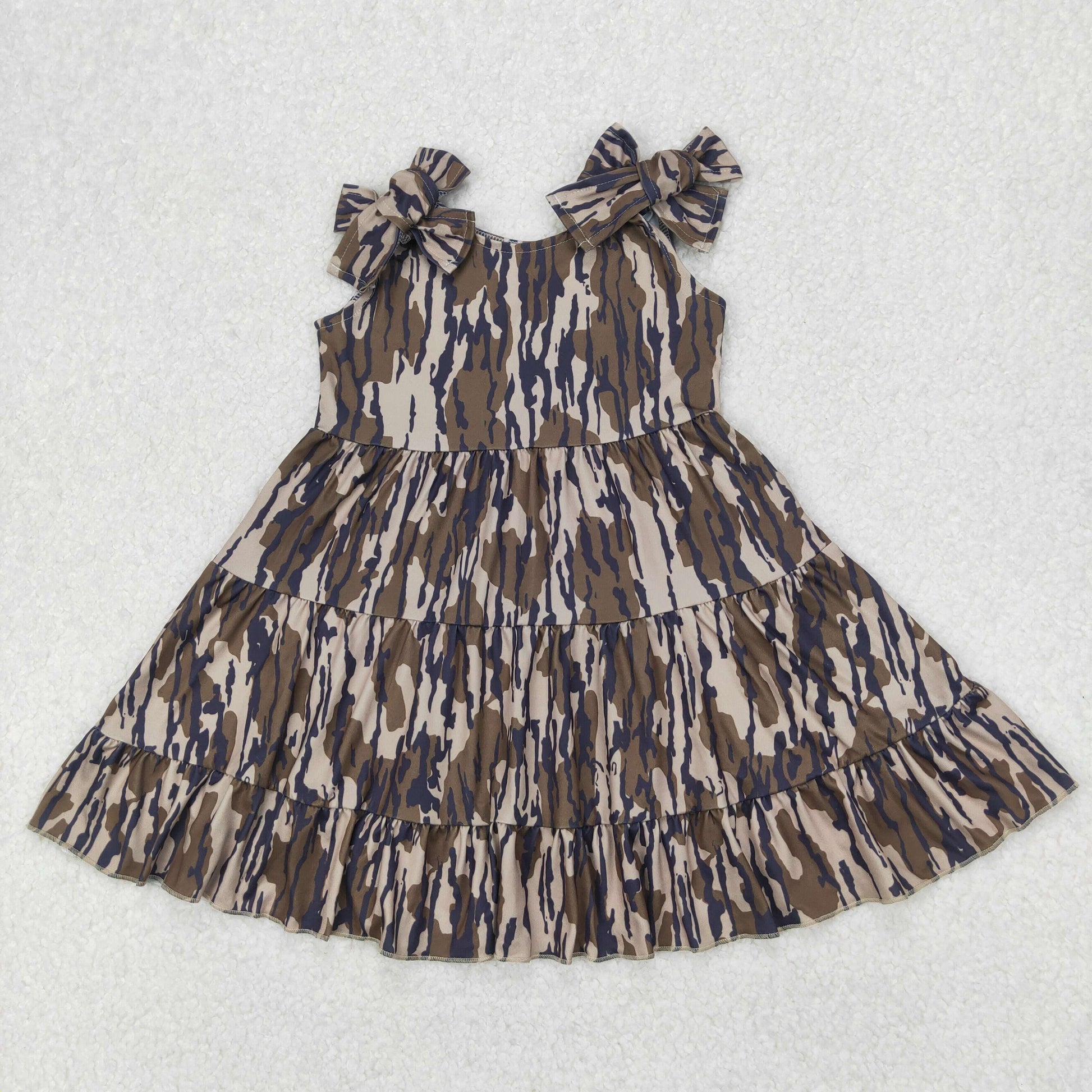 GSD2203 Brown Camo Leaf Sleeveless Dress Girls Boutique Outfits 202503 RTS